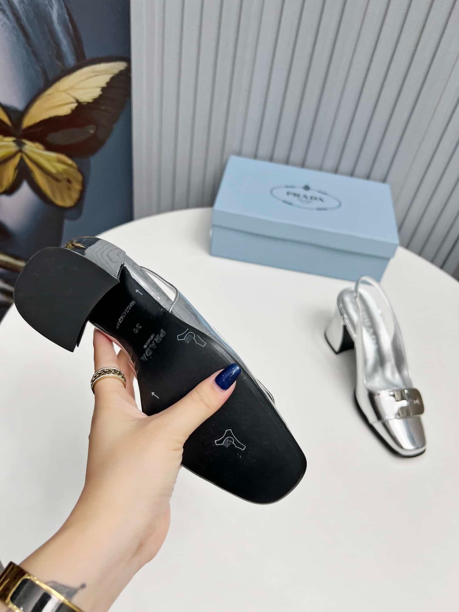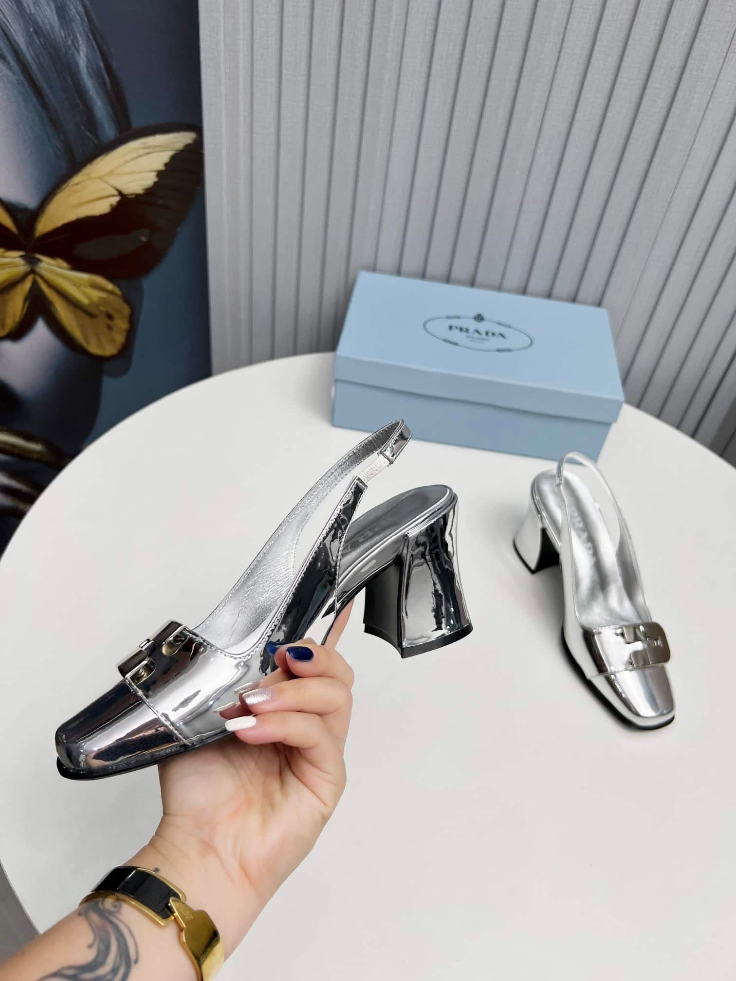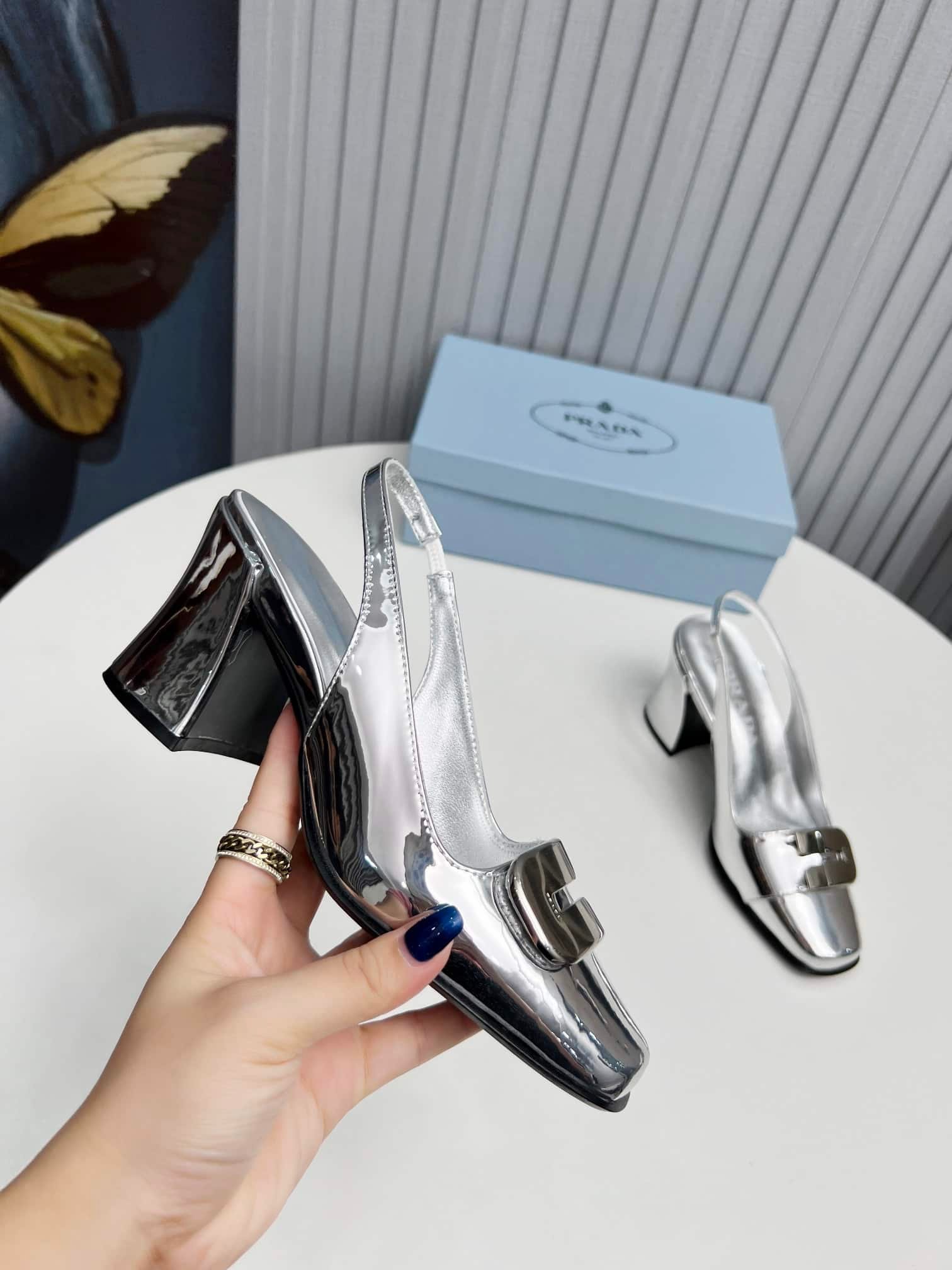 Be the first to review “Prada Leather Slingback Pumps Silver” Cancel reply