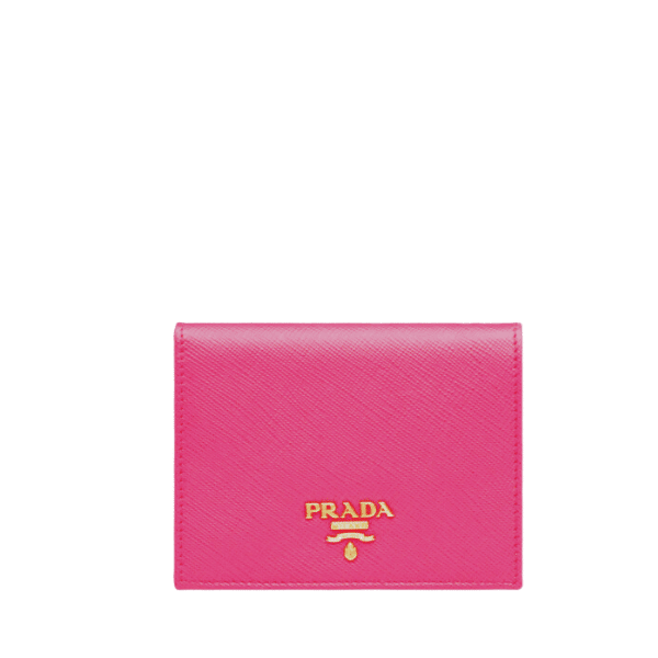 Prada Saffiano Leather Flap Small Wallet Dark Pink And Gold 10Cm 1Mv204 Qwa F0505