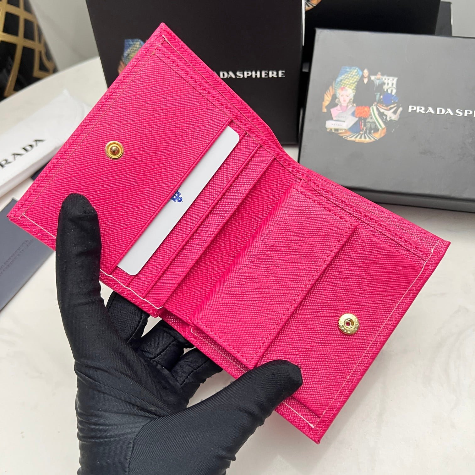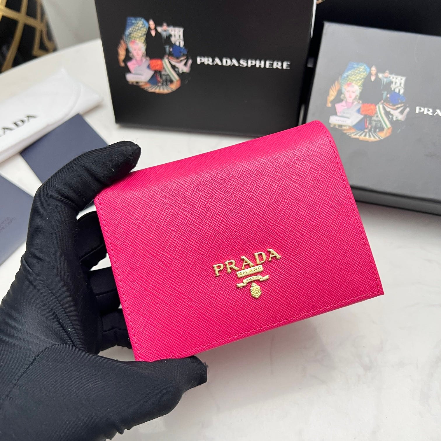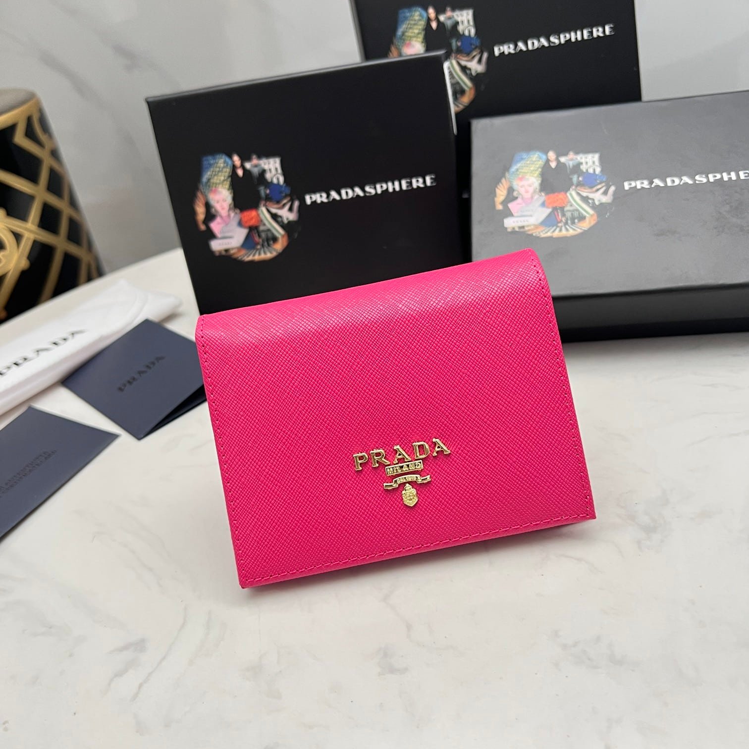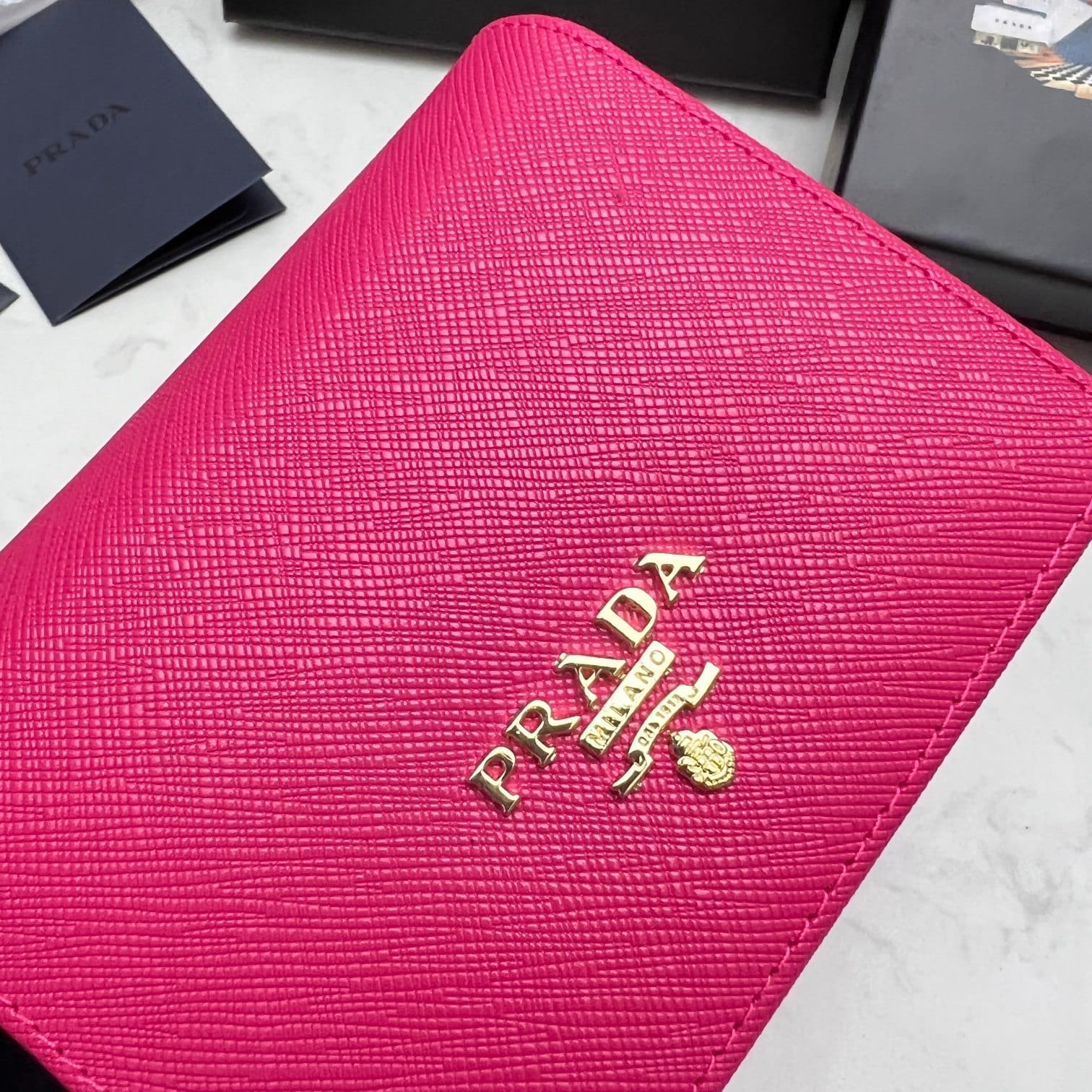 Be the first to review “Prada Saffiano Leather Flap Small Wallet Dark Pink And Gold 10Cm 1Mv204 Qwa F0505” Cancel reply