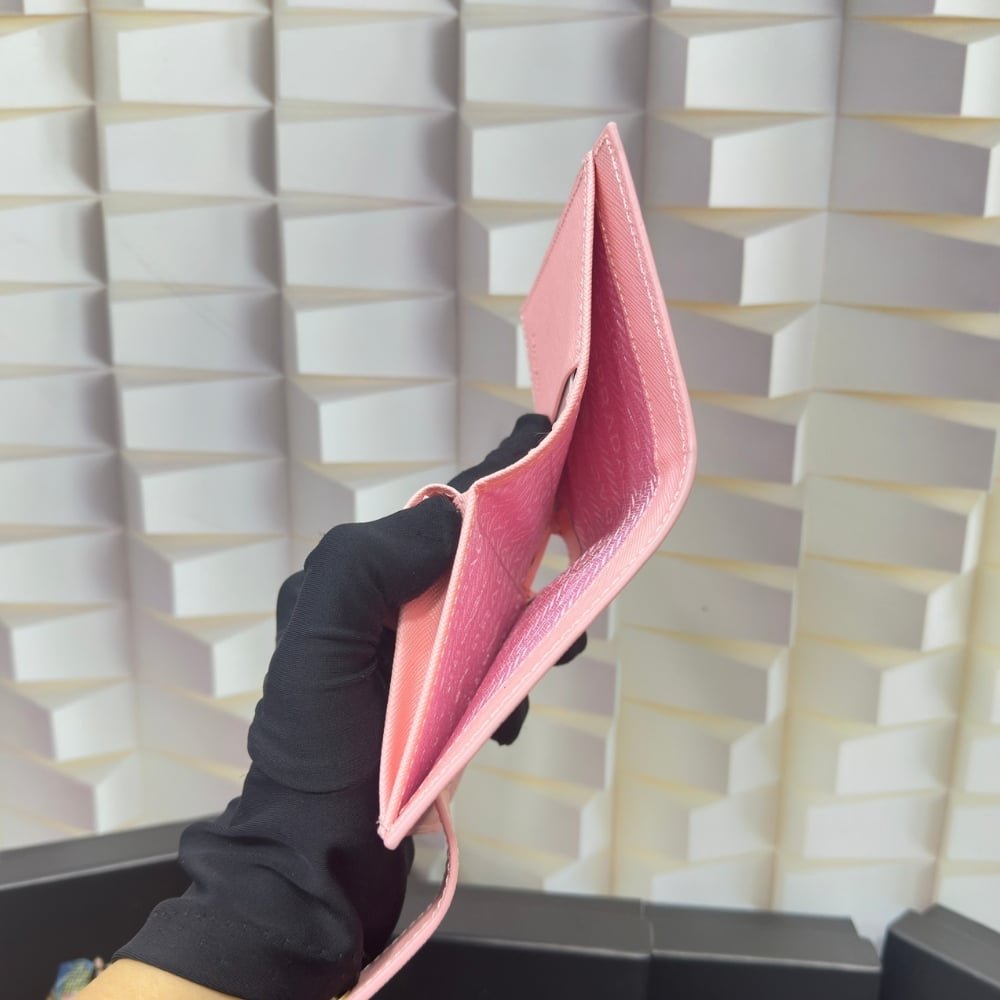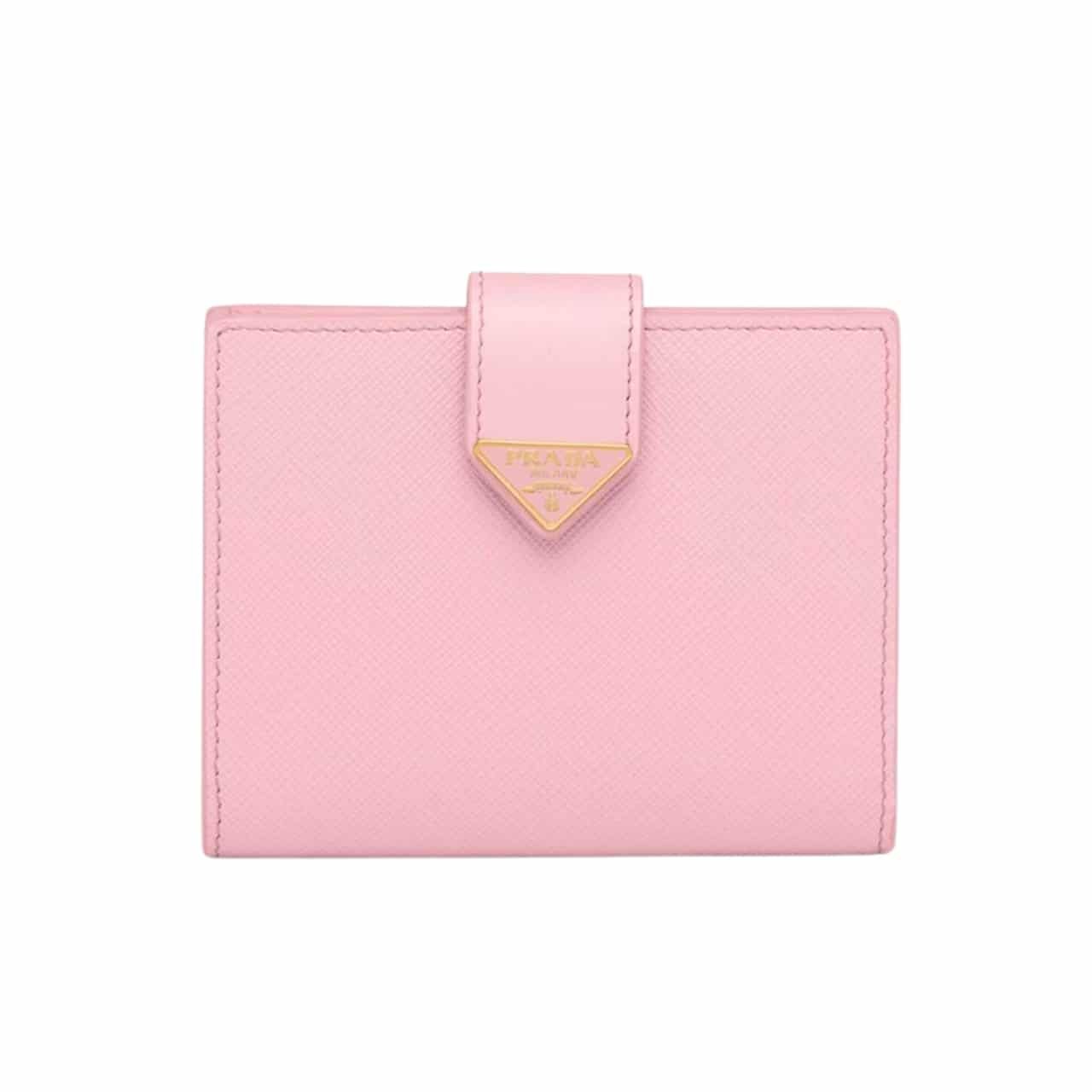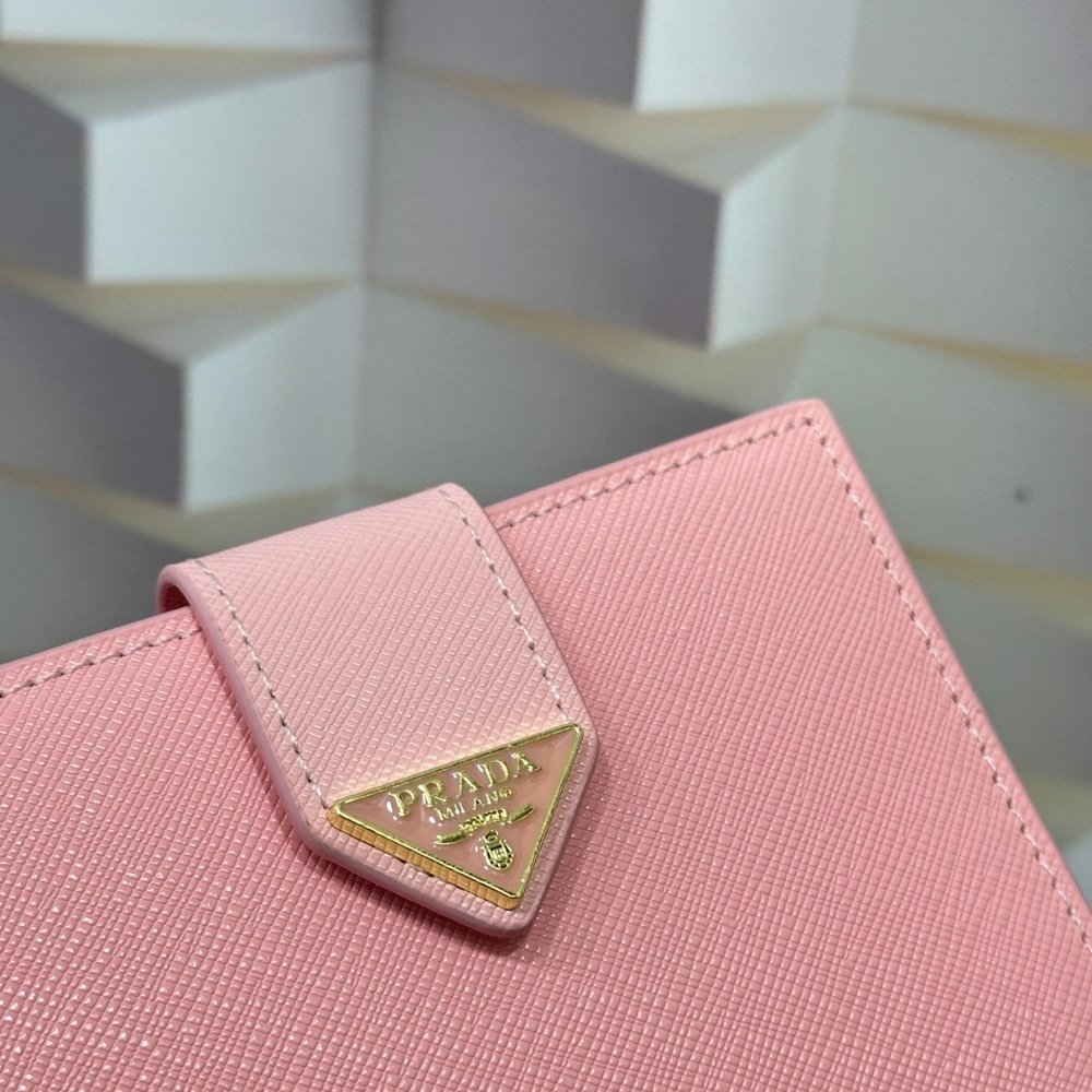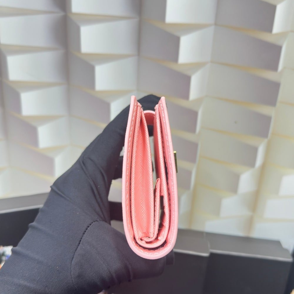 Prada Saffiano Leather Vertical Short Wallet Flap Triangle Logo Pink 10Cm