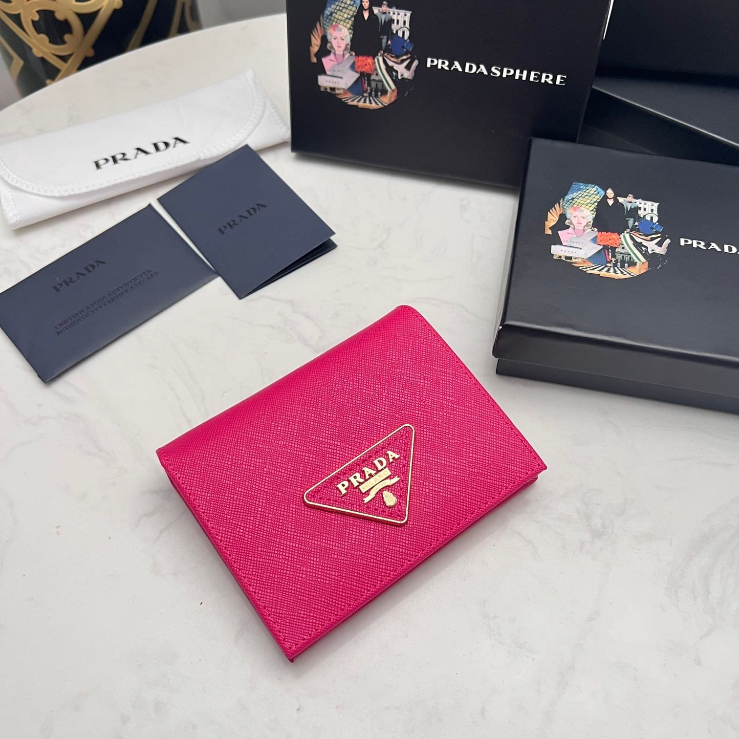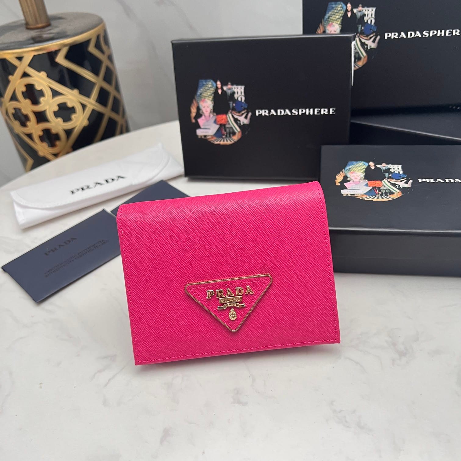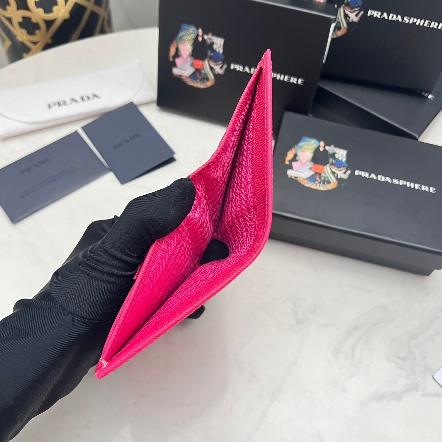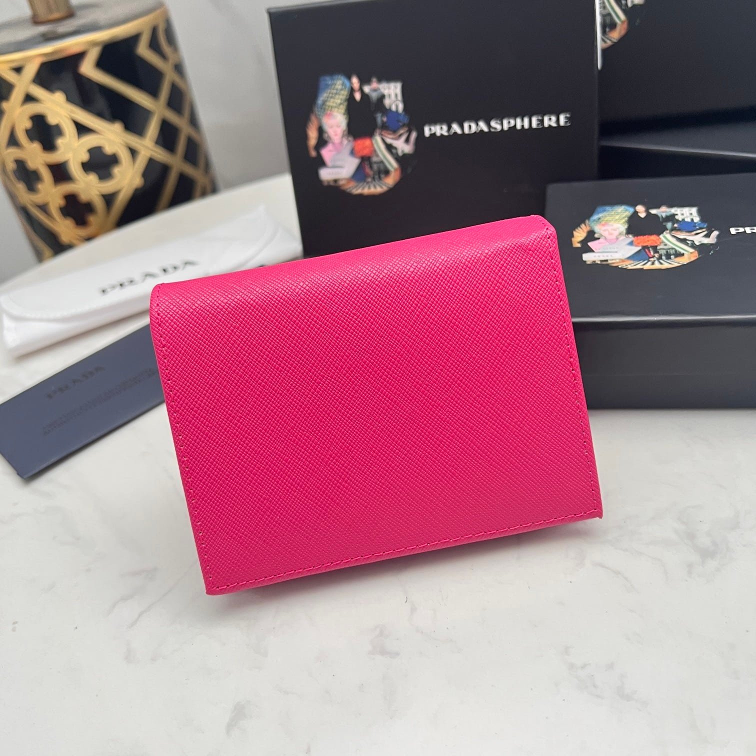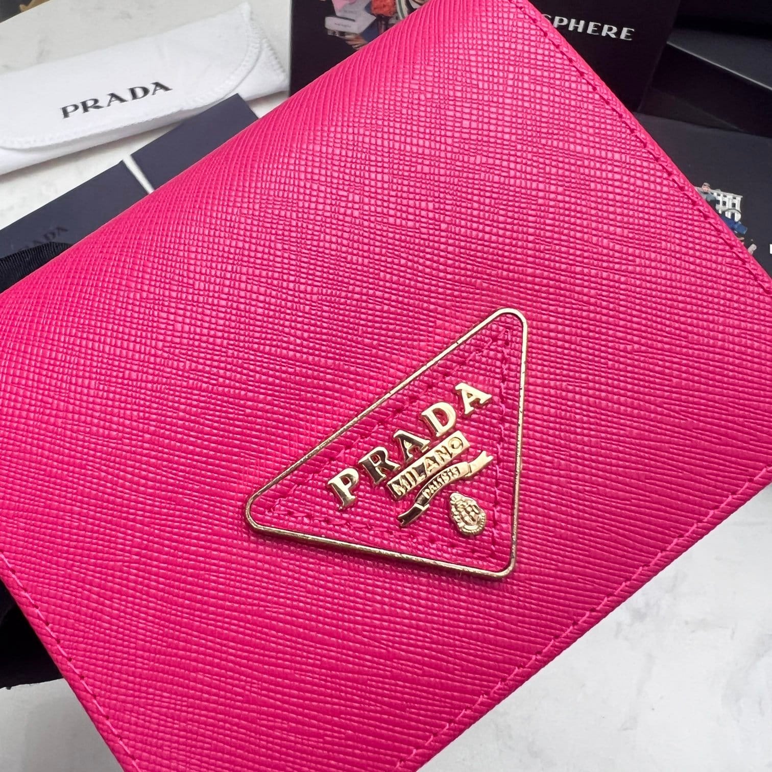 Prada Small Saffiano Lux Leather Flap Continental Triangle Dark Pink Wallet 10Cm