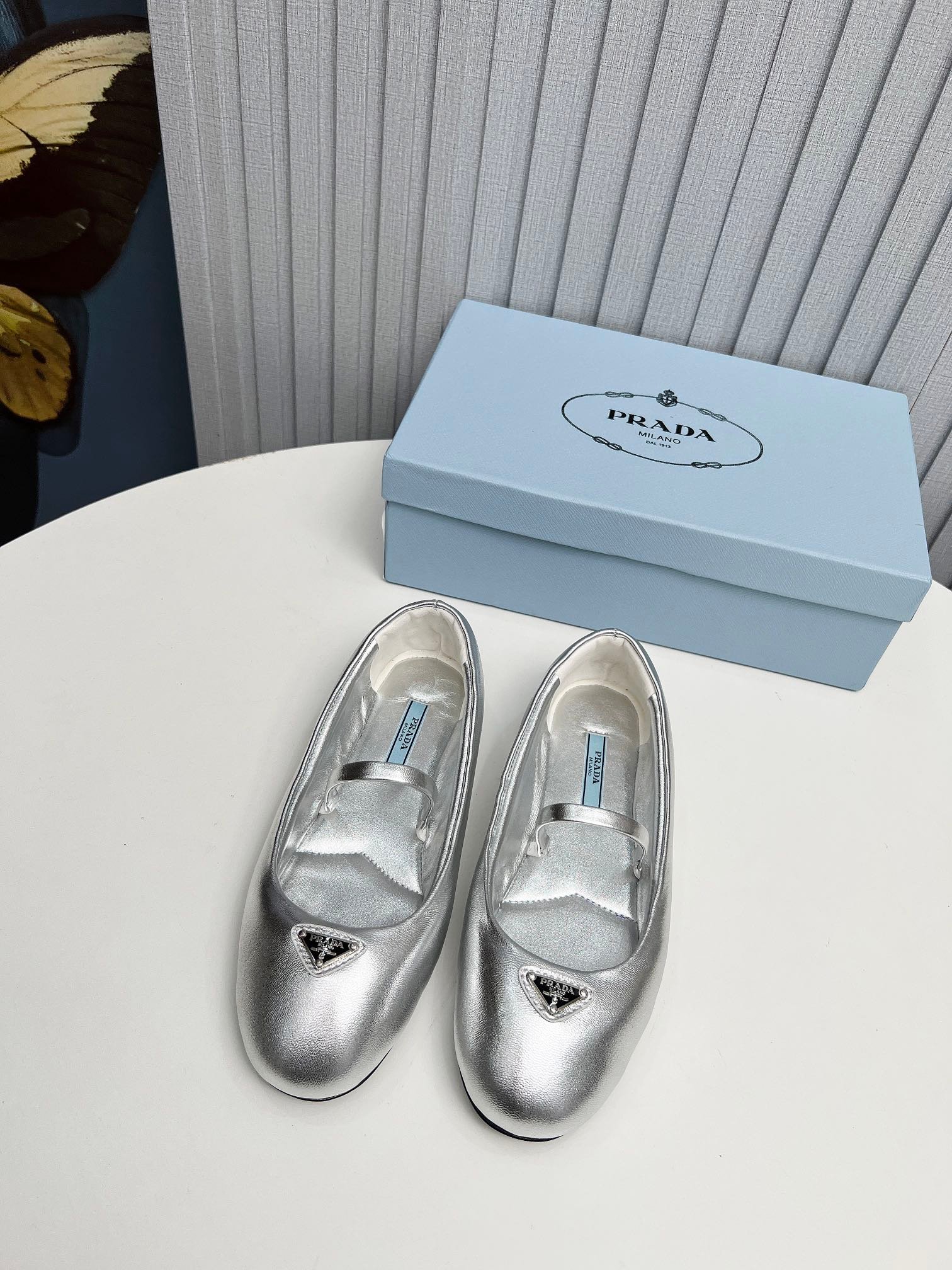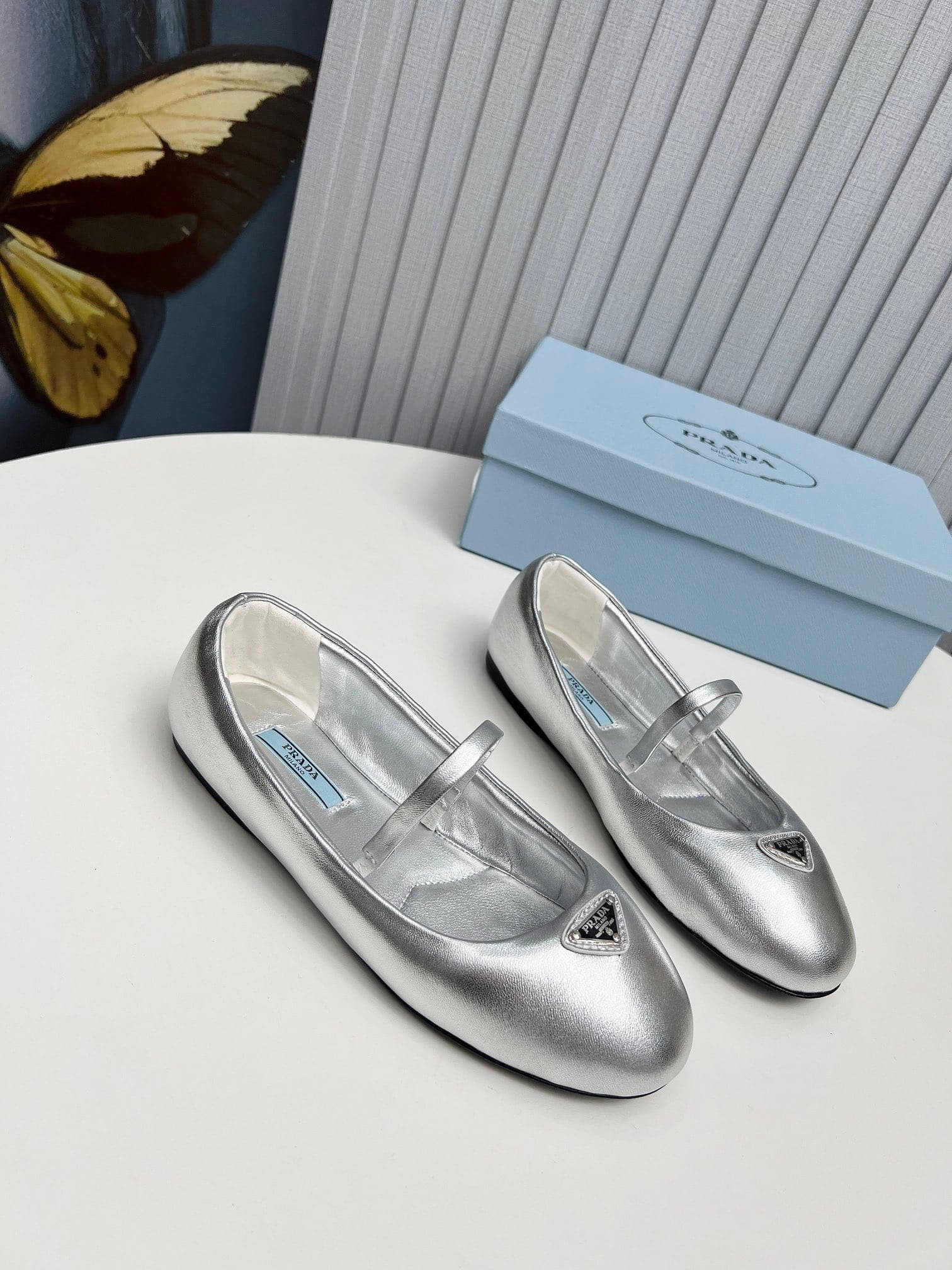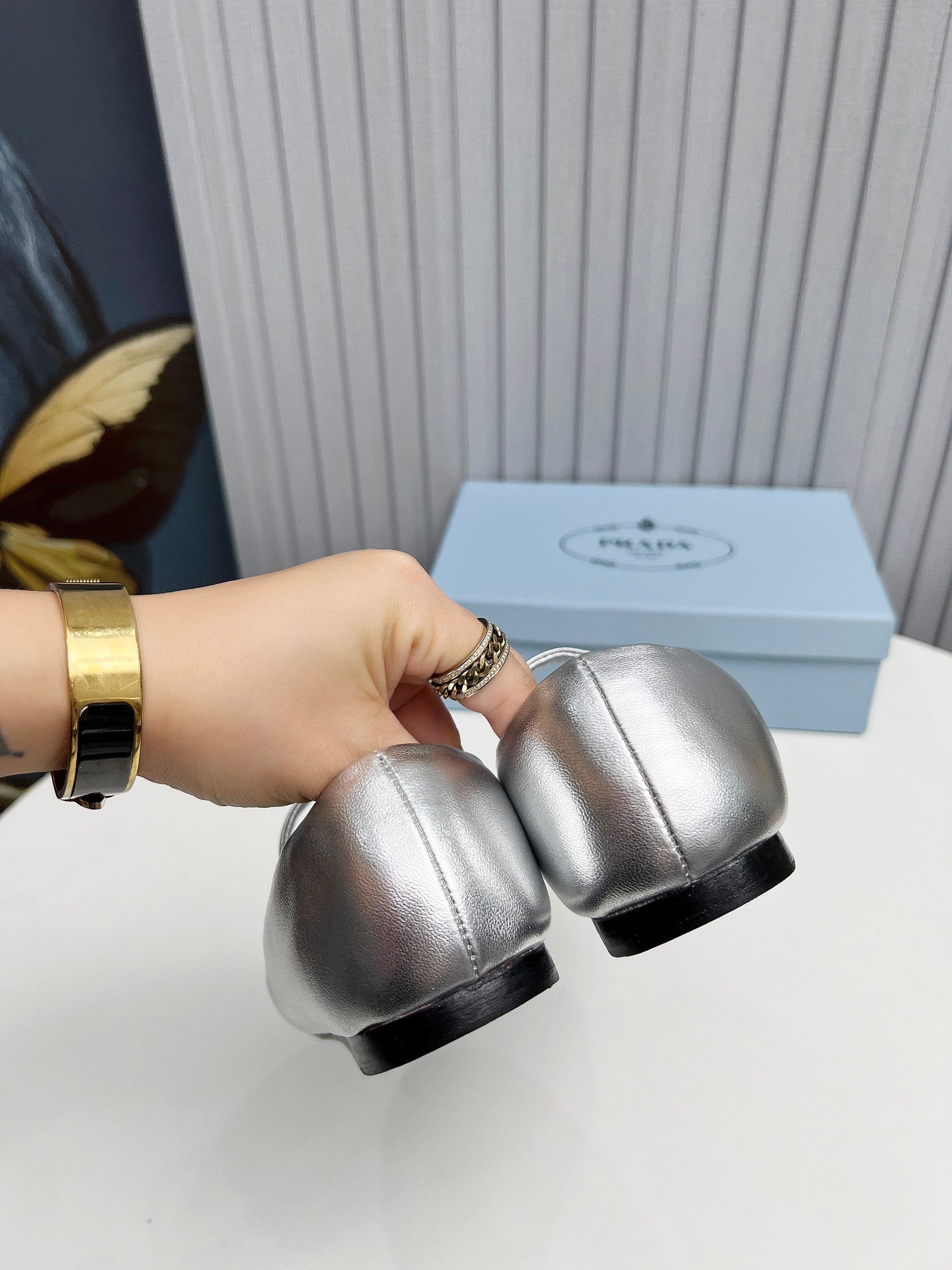 Prada Soft Padded Nappa Leather Ballerinas Silver