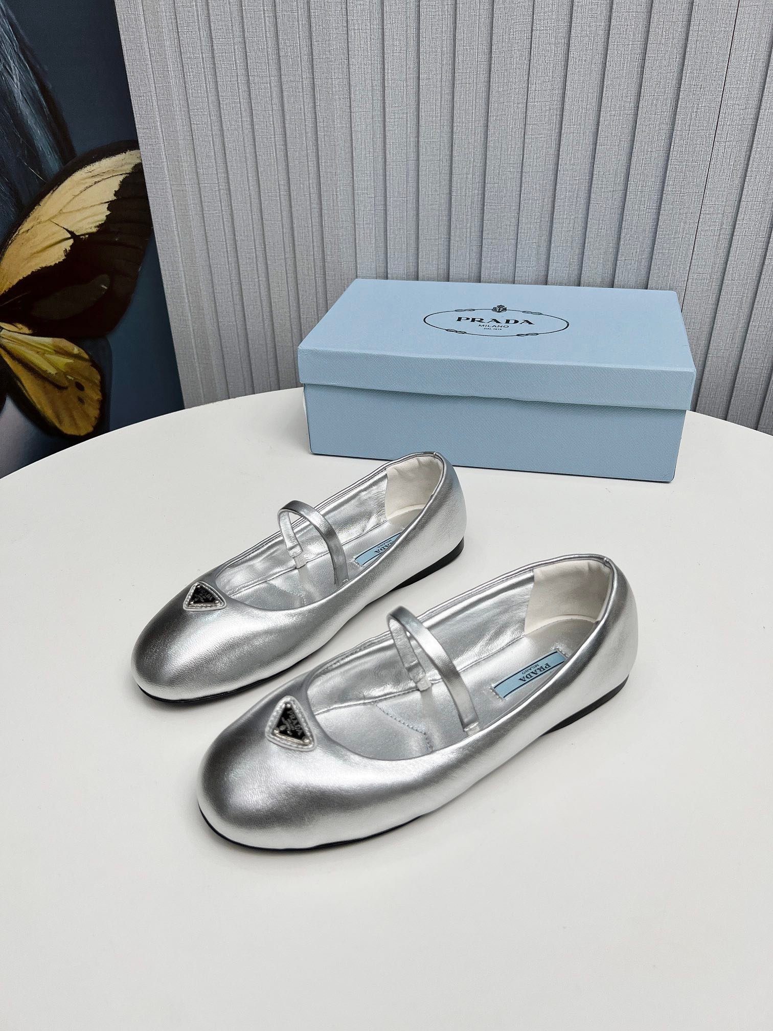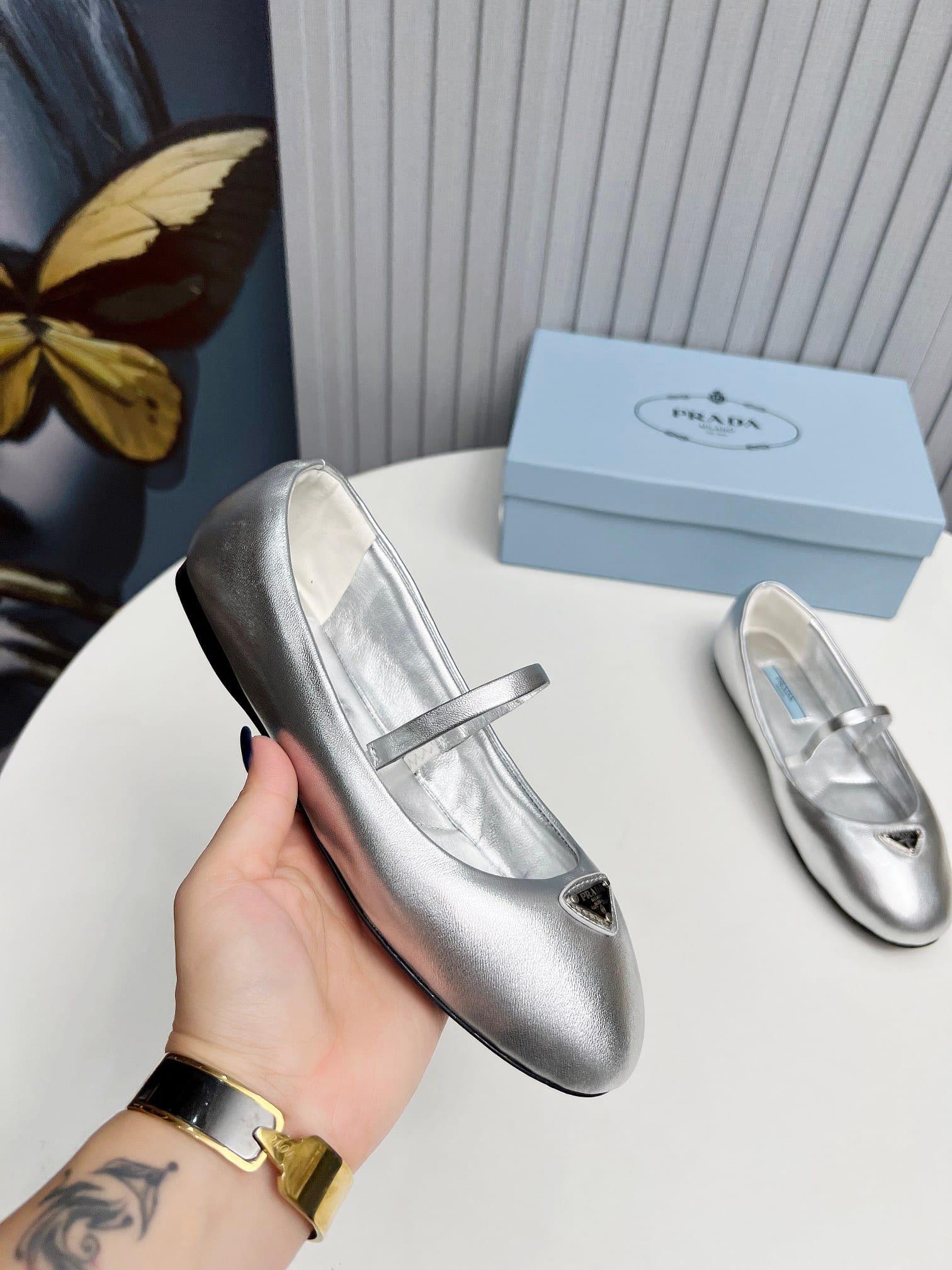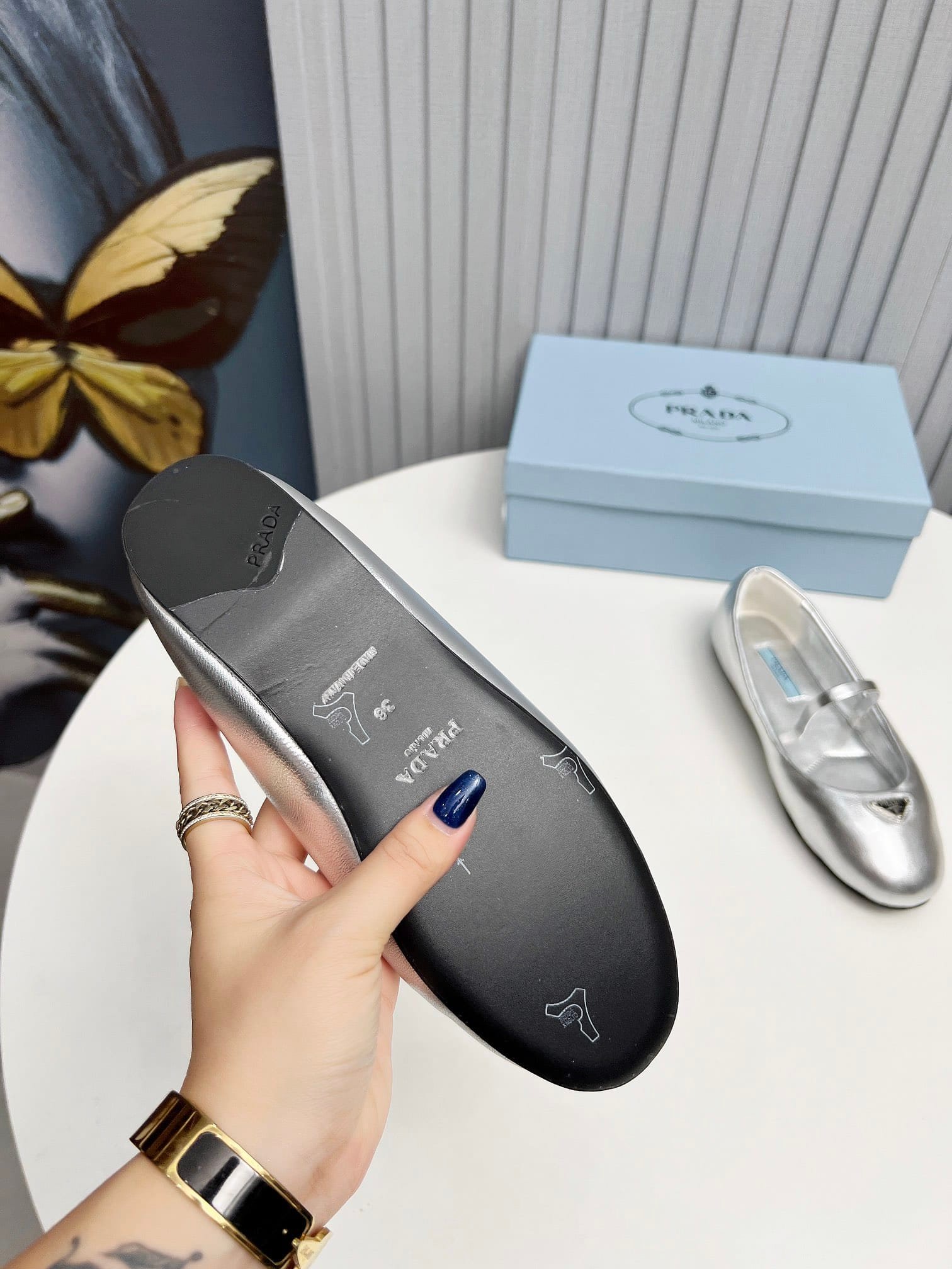 Prada Soft Padded Nappa Leather Ballerinas Silver