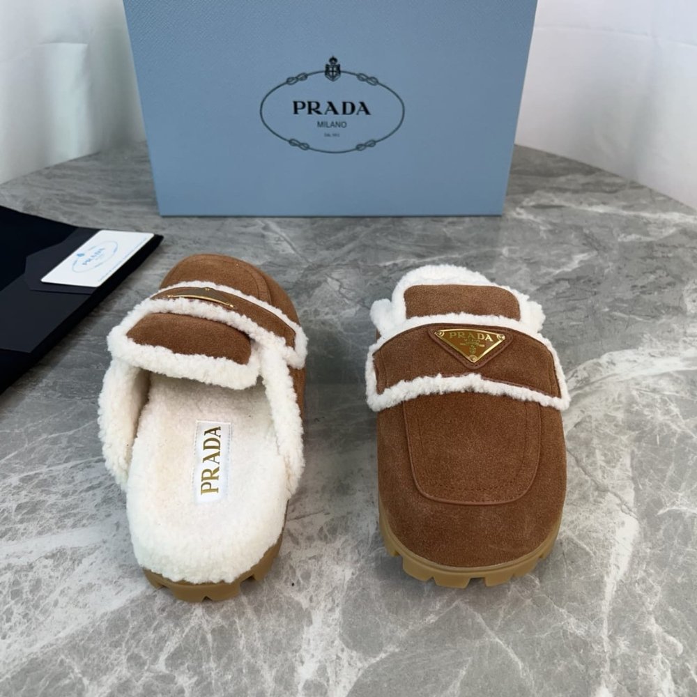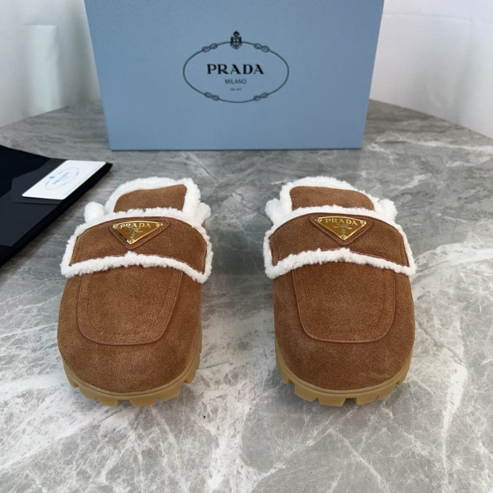 Prada Suede And Shearling Slippers Cinnamon 1S711M X0O F0401 F Zg20