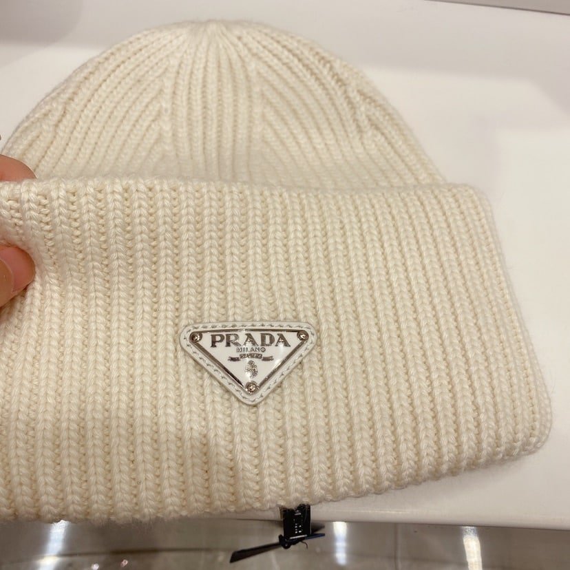 Prada Wool And Cashmere Beanie Silver White Umd489 3Im F0009 S 211