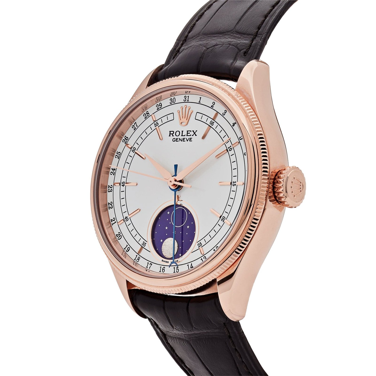 Secured on a luxurious brown alligator leather strap with an Everose gold folding buckle, this Cellini is as comfortable as it is elegant. Designed for connoisseurs who appreciate understated luxury, the Rolex Cellini 50535 is a stunning addition to any collection, blending classic design with intricate functionality.