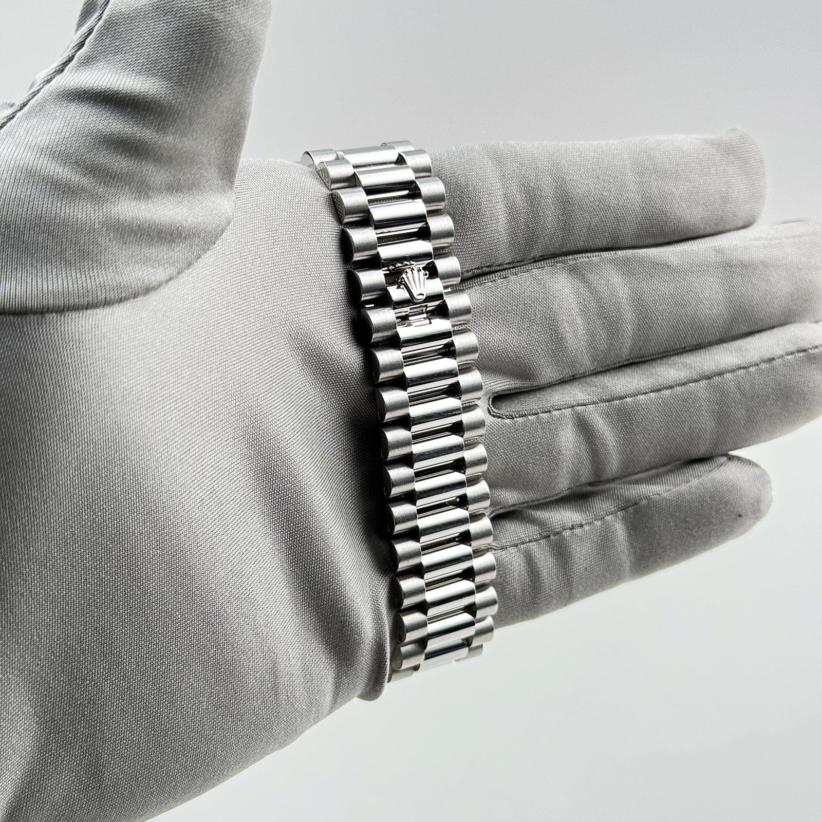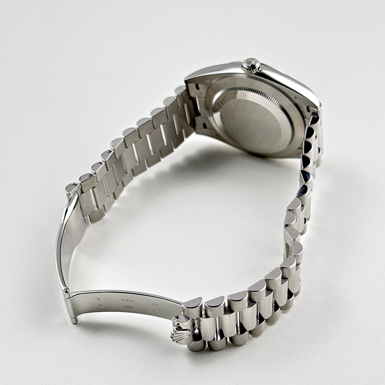 Paired with the iconic President bracelet, also in platinum, this model provides exceptional comfort and sophistication. The day display at 12 o’clock and date window at 3 o’clock ensure practicality while embodying Rolex’s hallmark of timeless innovation and luxury.