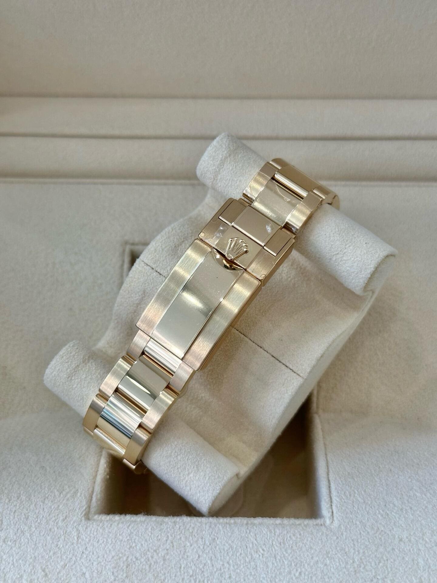 The 40mm Oyster case houses Rolex’s latest-generation Caliber 4131, a chronograph movement that improves upon its predecessor with optimized efficiency, enhanced shock resistance, and a 72-hour power reserve. Paired with an Oyster bracelet in matching yellow gold and equipped with the Easylink comfort extension, the watch blends sporting functionality with elegant luxury. Revered by collectors and enthusiasts alike, the Daytona 126508 Green Dial remains a modern classic—now made even more compelling with Rolex’s latest technical advancements.