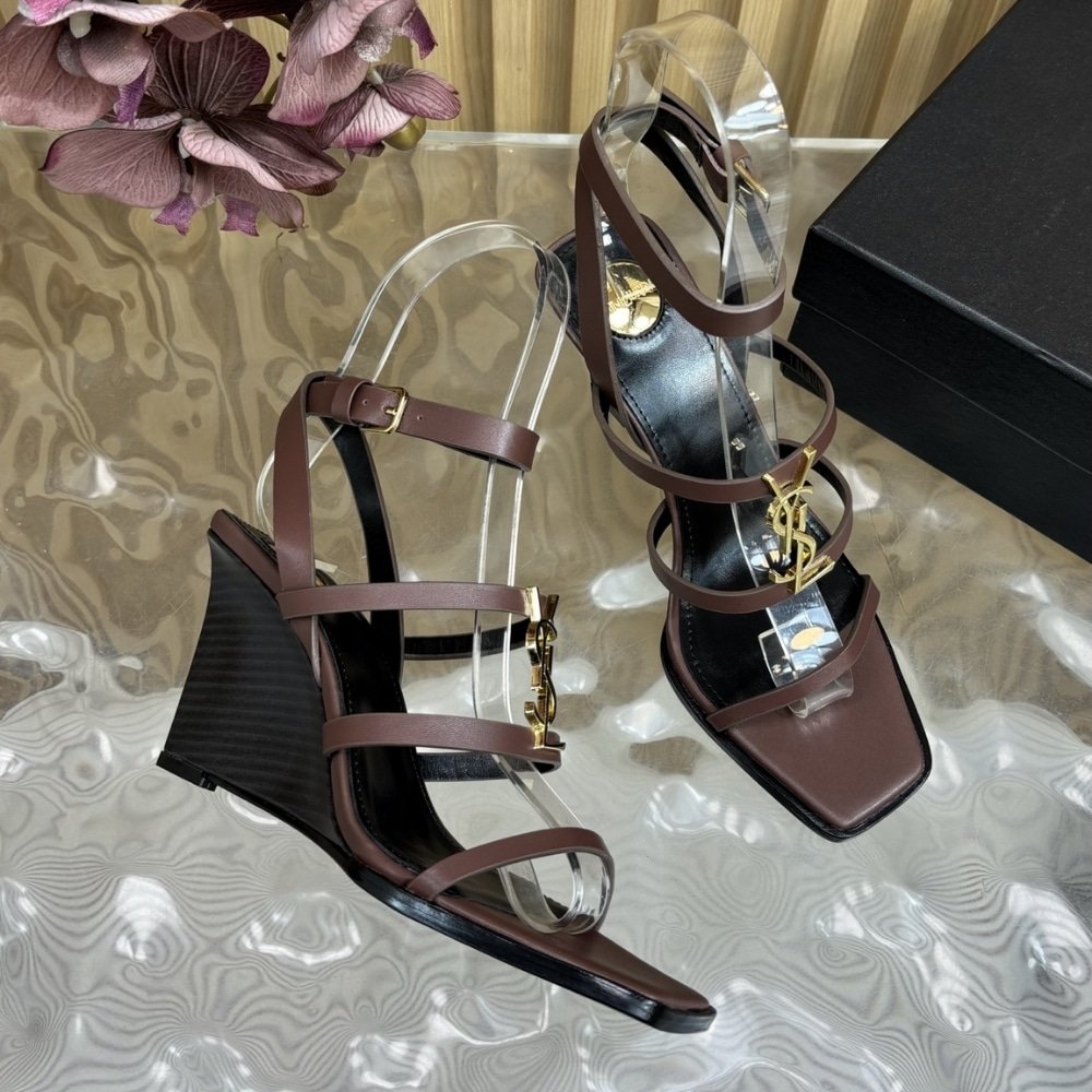 Saint Laurent Cassandra Wedges In Smooth Leather Dark Brown 821090Dwedd2023