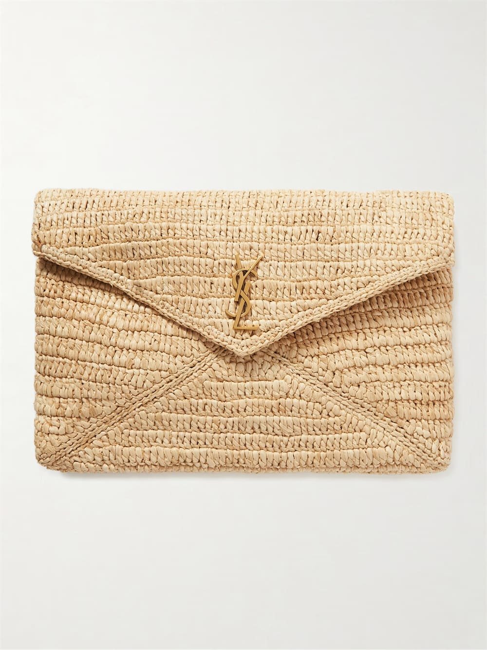 Saint Laurent Cassandre Large Envelope Pouch in Raffia