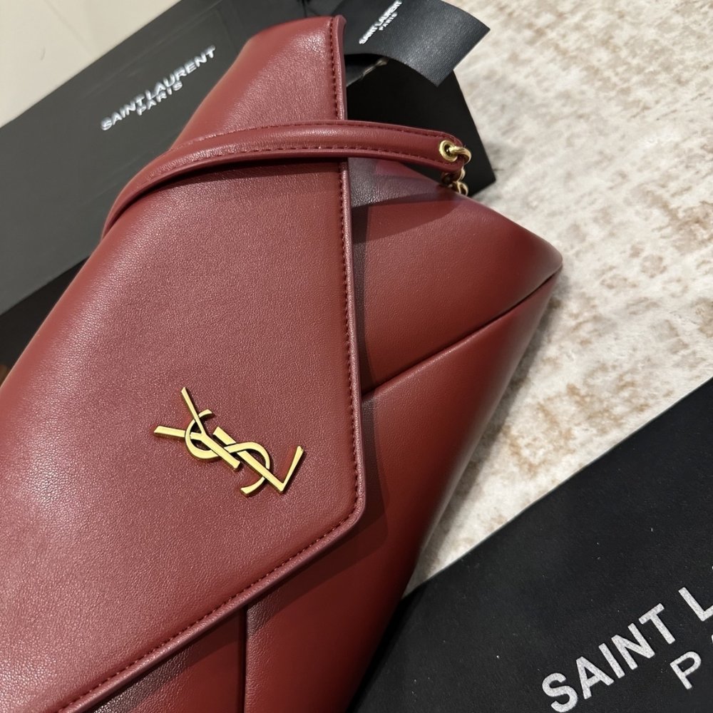 Saint Laurent Cassandre XXL Pouch On Chain In Shiny Leather Red 35Cm 855802AADOO6195