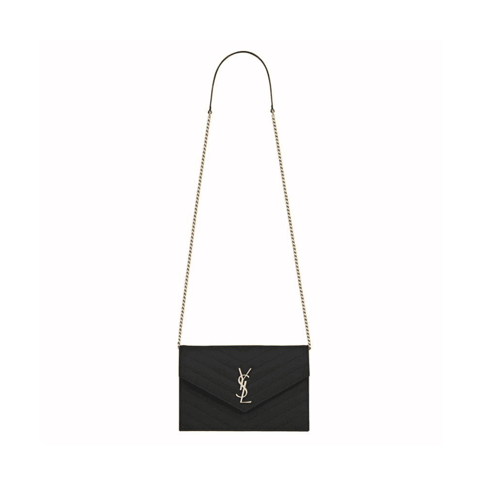 Saint Laurent Envelope Chain Wallet In Grain De Poudre Embossed