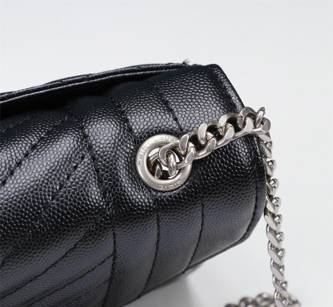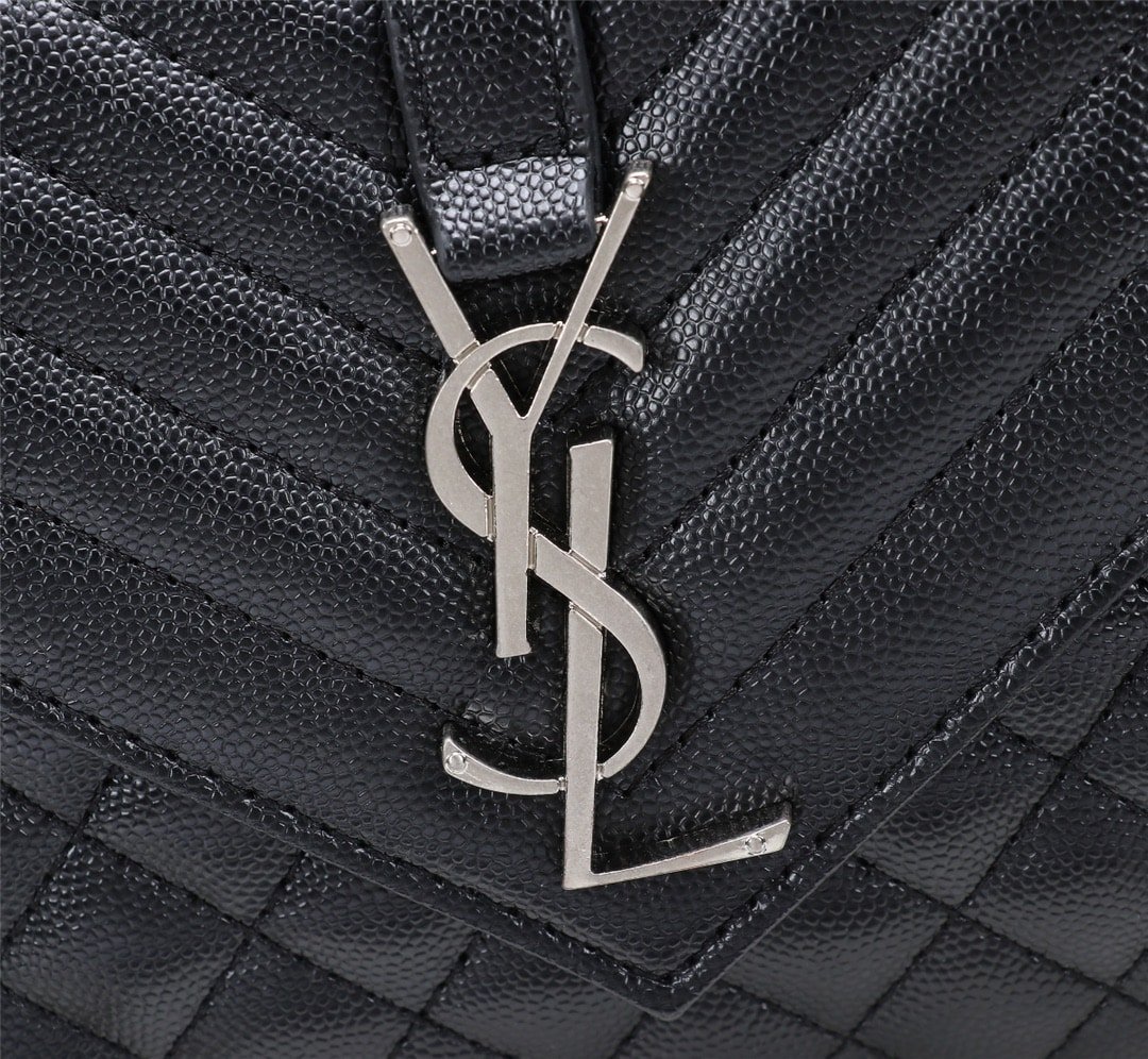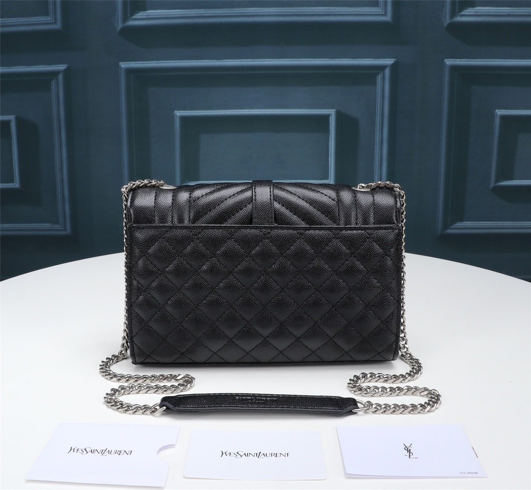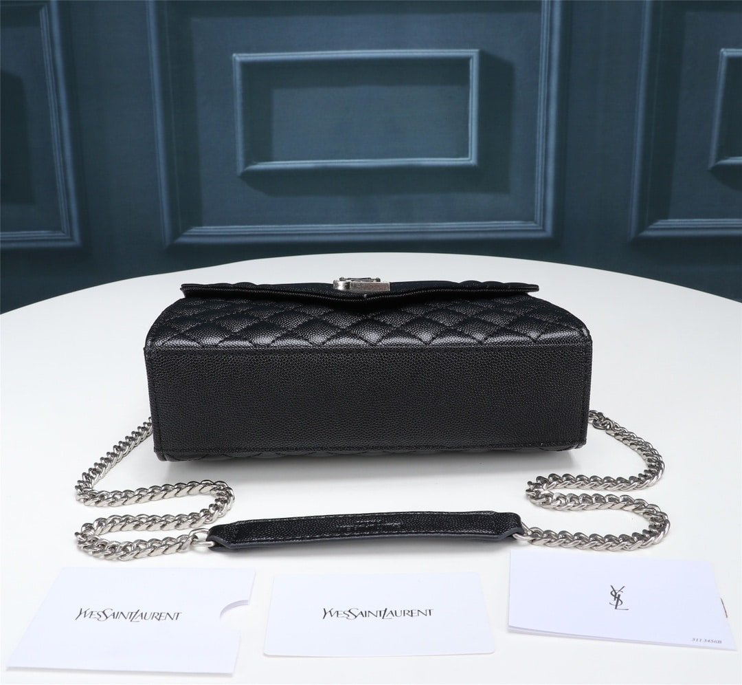 Saint Laurent Envelope Small Bag In Mix Matelassé Grain De Poudre Embossed Black Silver 21Cm 600195Bow921000