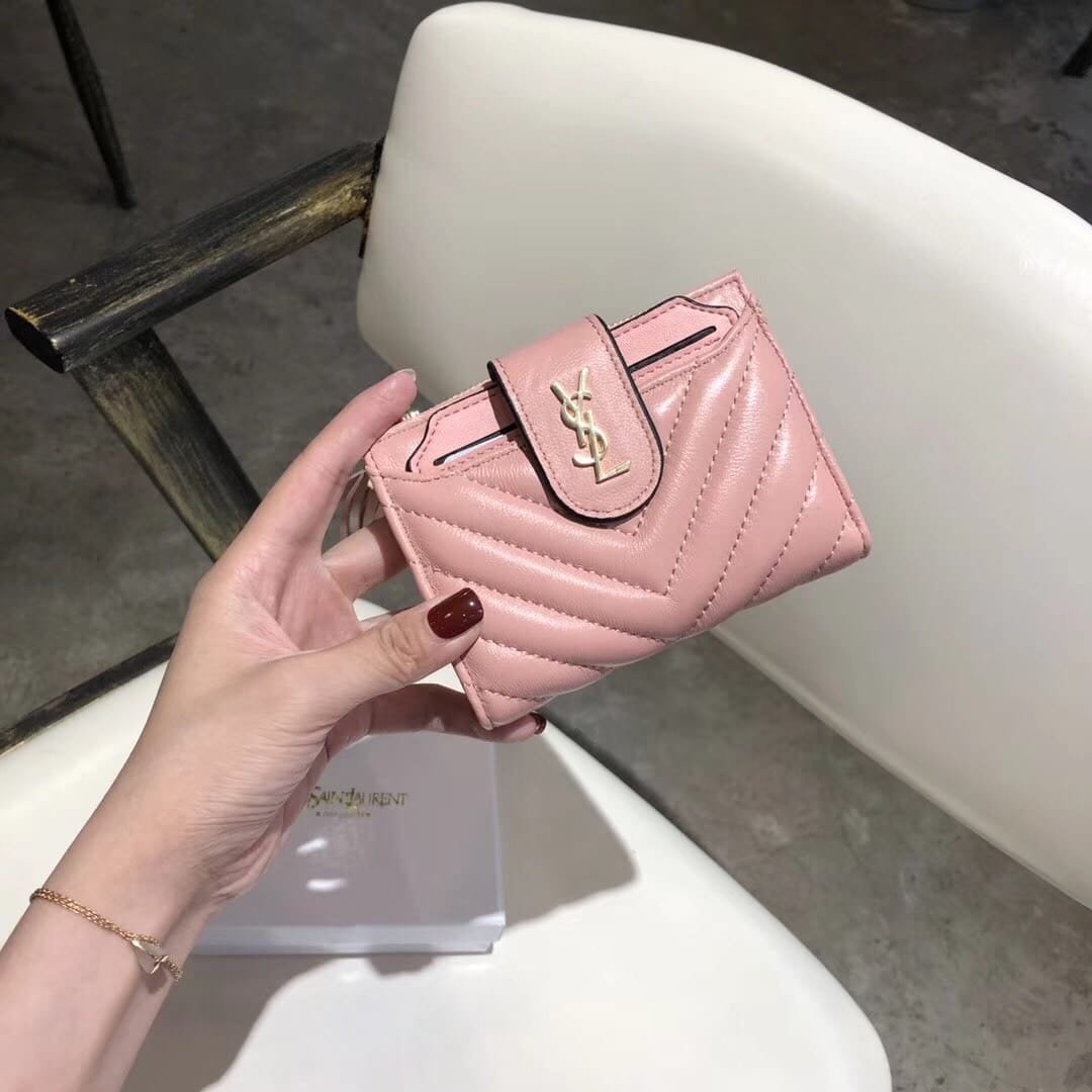 Saint Laurent Half Fold Wallet Card Holder Pink 12Cm