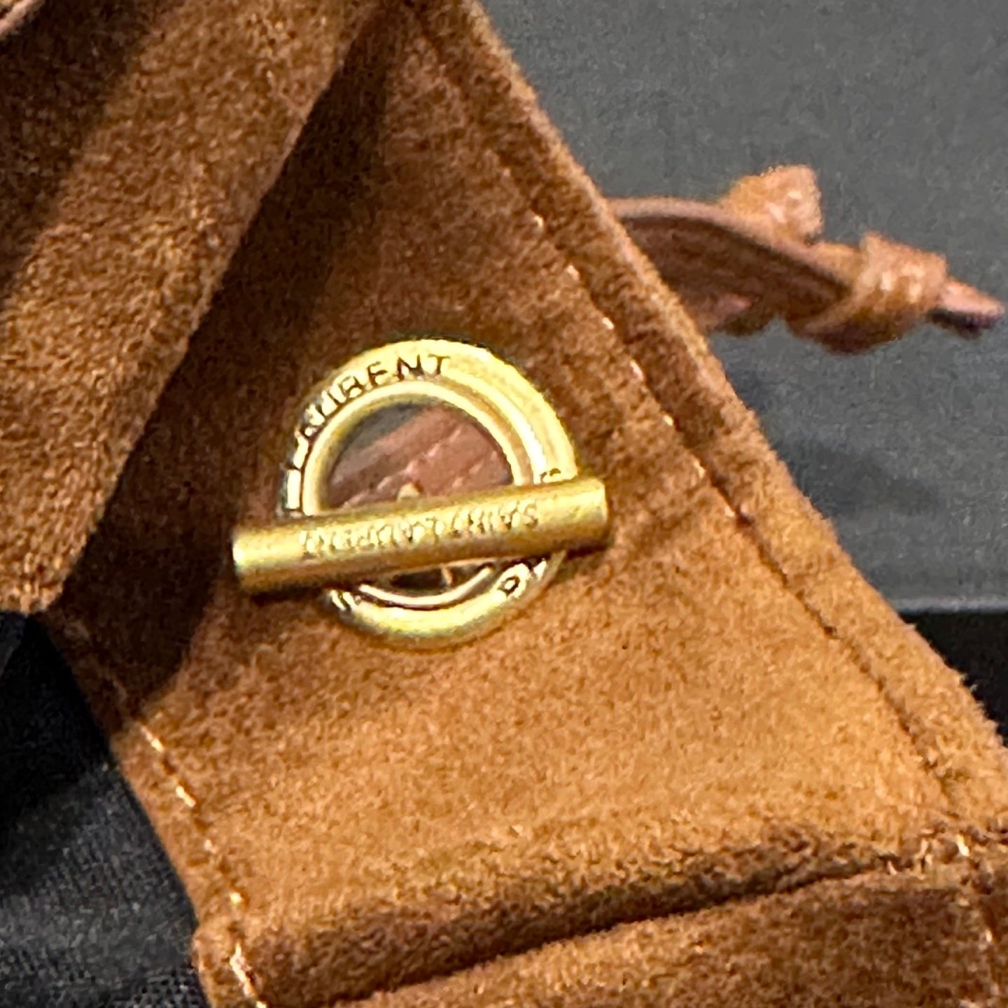The shoulder pouch version of the JAMIE , decorated with the Cassandre and Carré rive gauche topstitching. This lightweight and compact bag features a chain strap for crossbody carry. Drawstring ties allow the sides to be cinched or expanded to create different silhouettes.