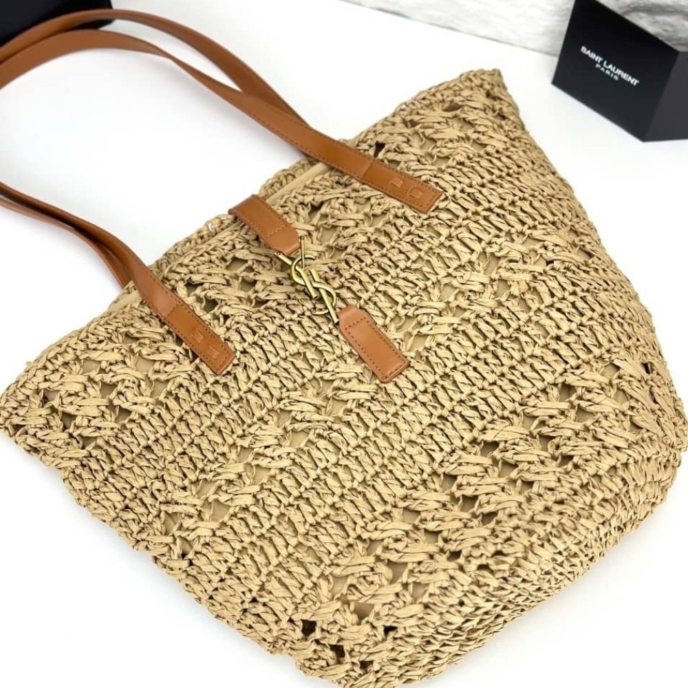 Saint Laurent Panier Raffia Natural Brown 39Cm 688221 Gaaac 2080