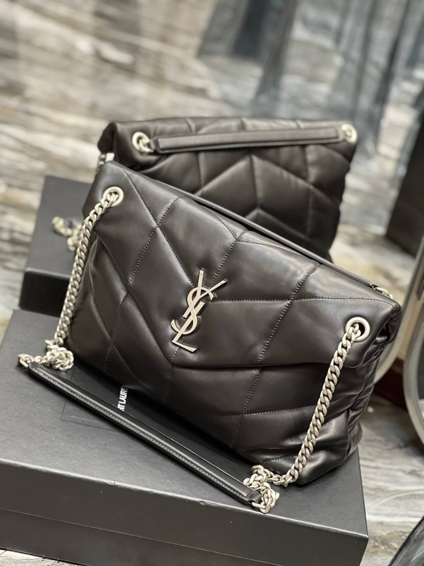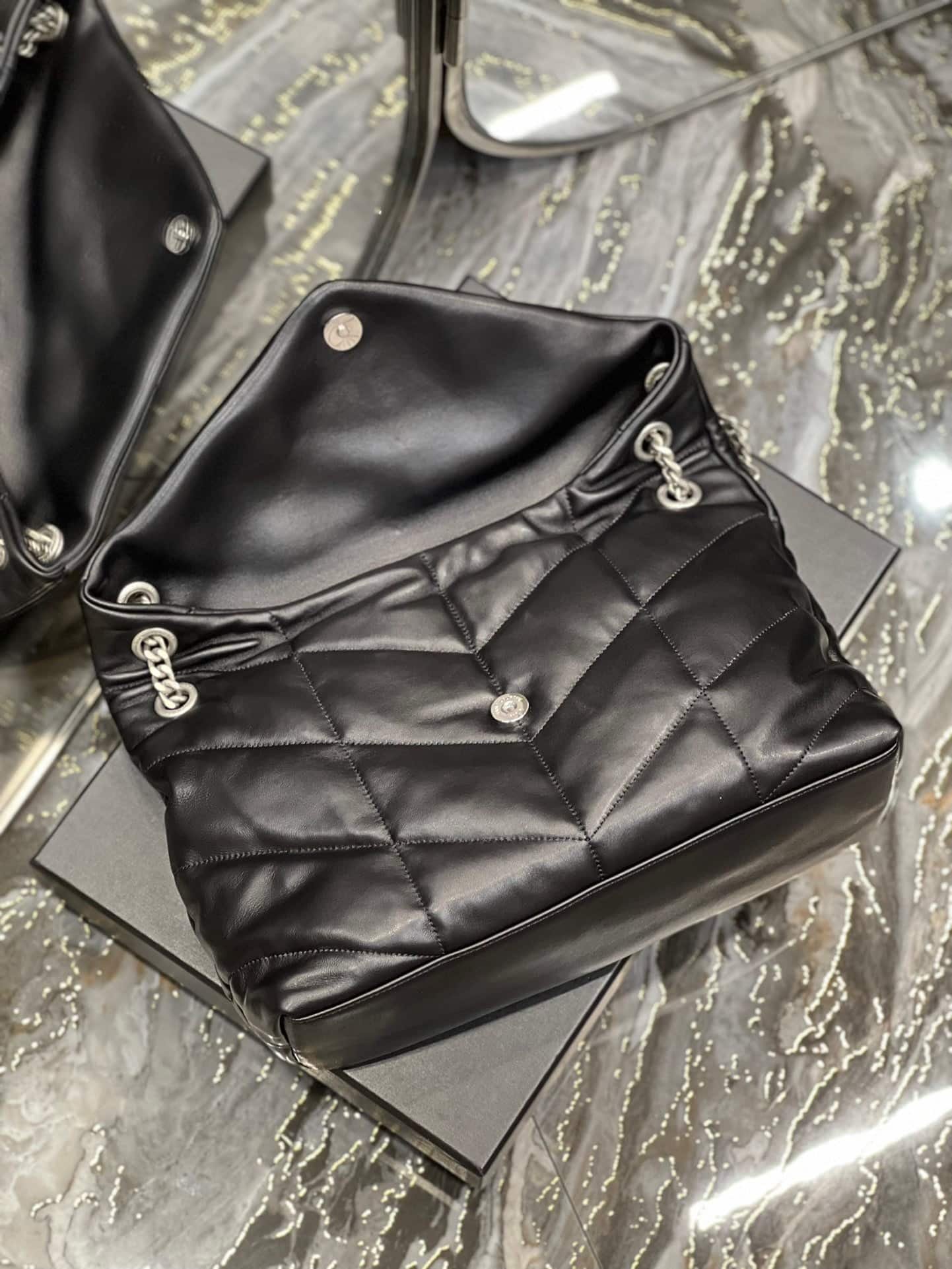 Saint Laurent Puffer Medium In Nappa Leather Silver Black 31Cm 5774751El001000