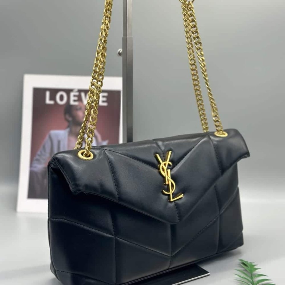 Saint Laurent Puffer Small In Nappa Leather Gold Black 29Cm 5774761El071000