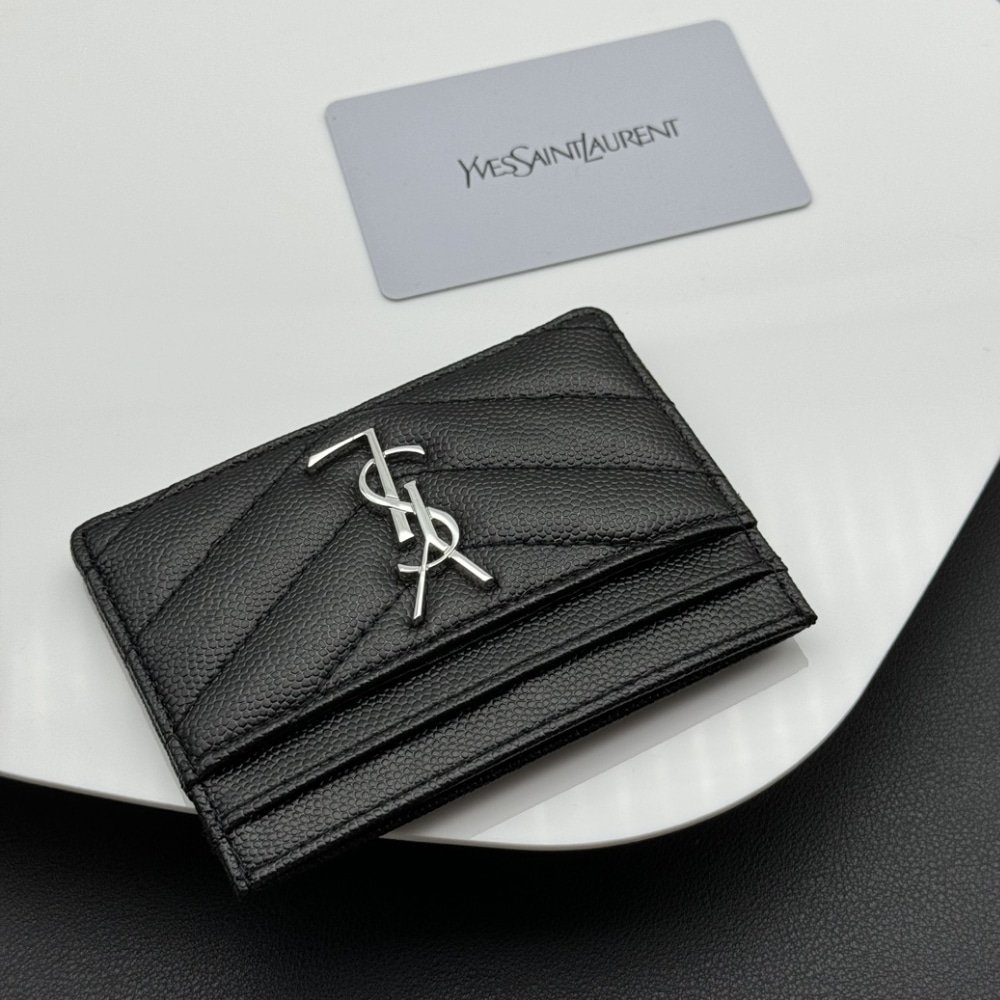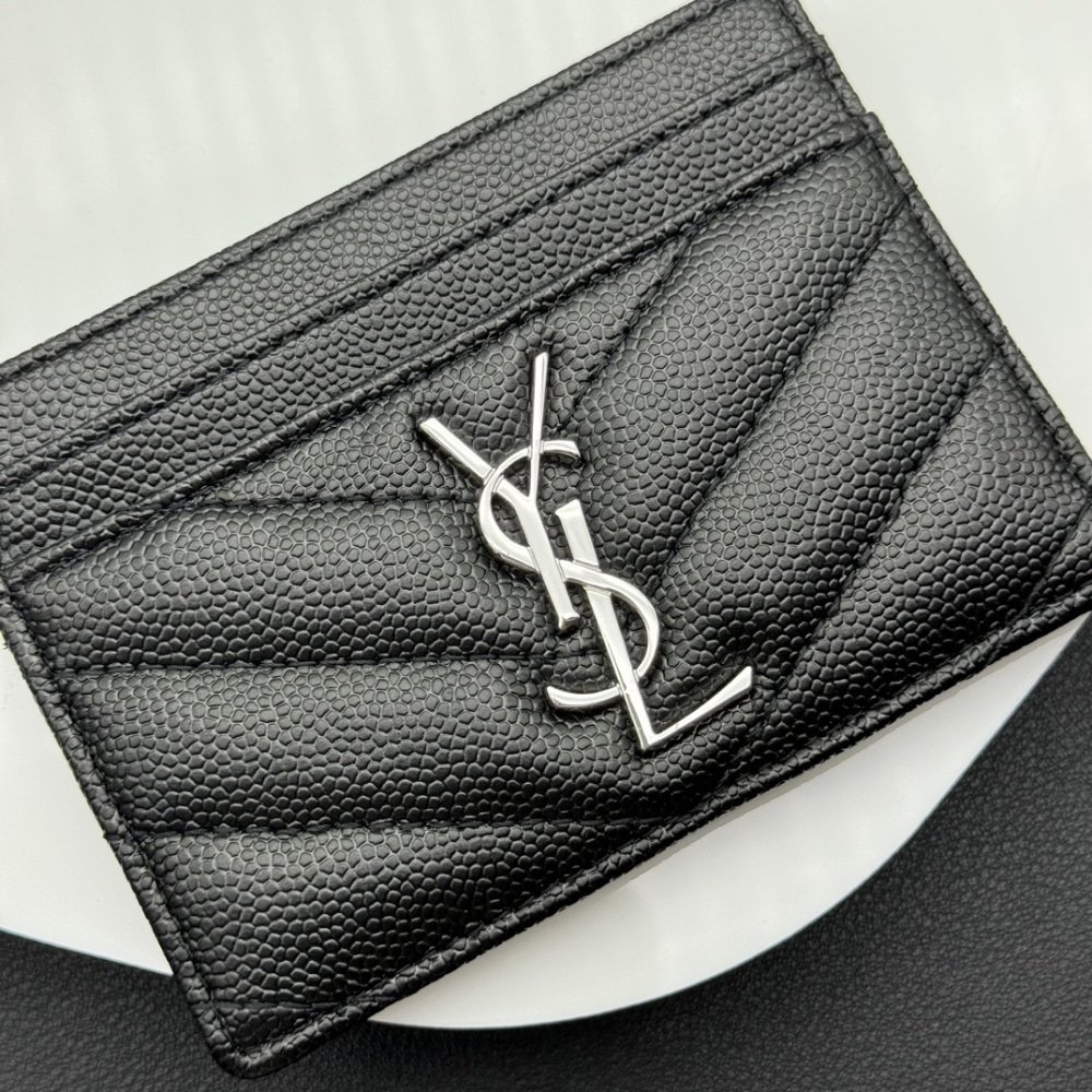 Saint Laurent Wallet Chevron And Logo Card Holders Black 10Cm