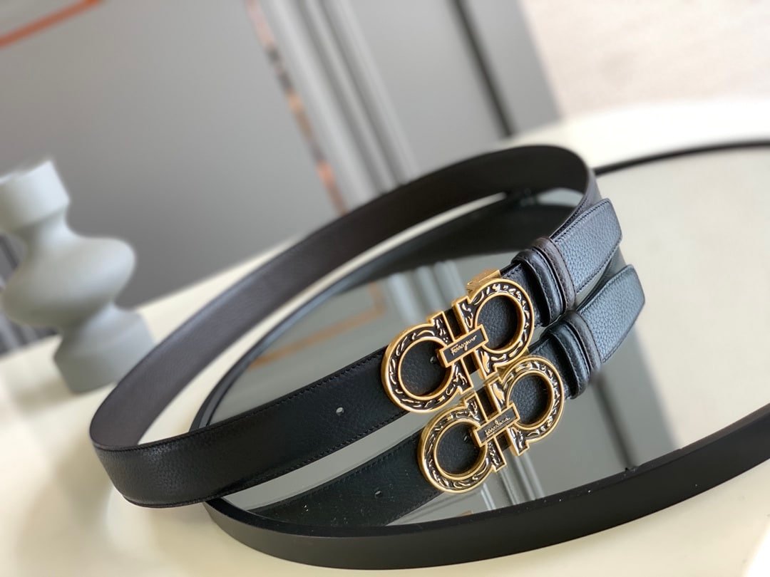 Salvatore Ferragamo Reversible And Gancini Gold Pattern Belt 3.5Cm
