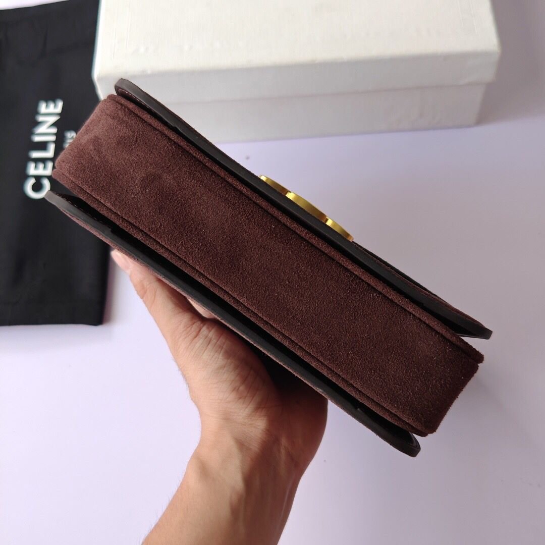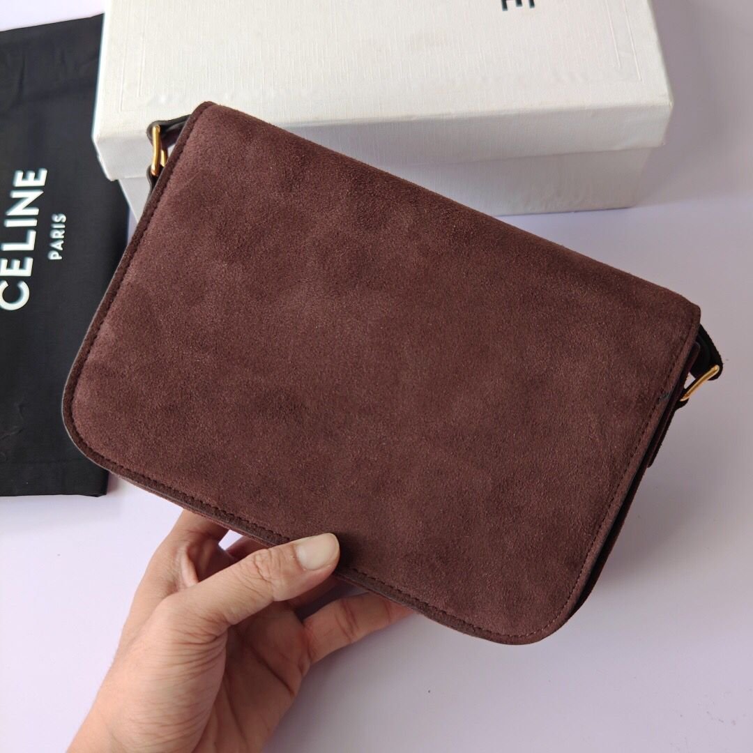 [Super Vip 1:1] Celine Teen Triomphe Bag In Brown Grained Nubuck 18Cm 188423Gur 18Ch