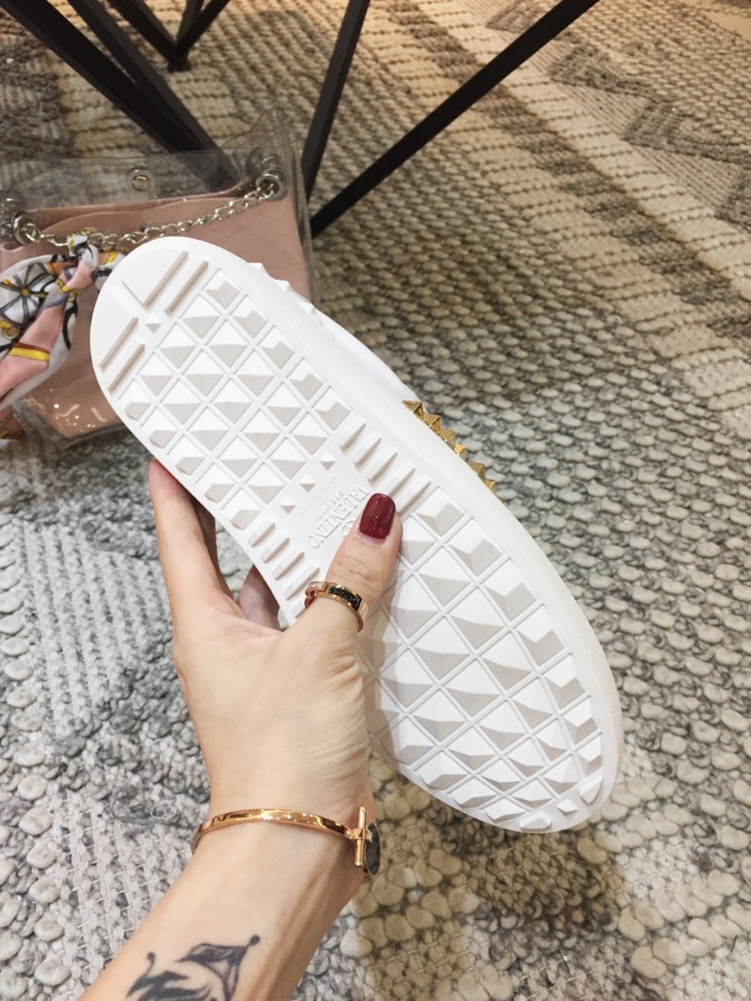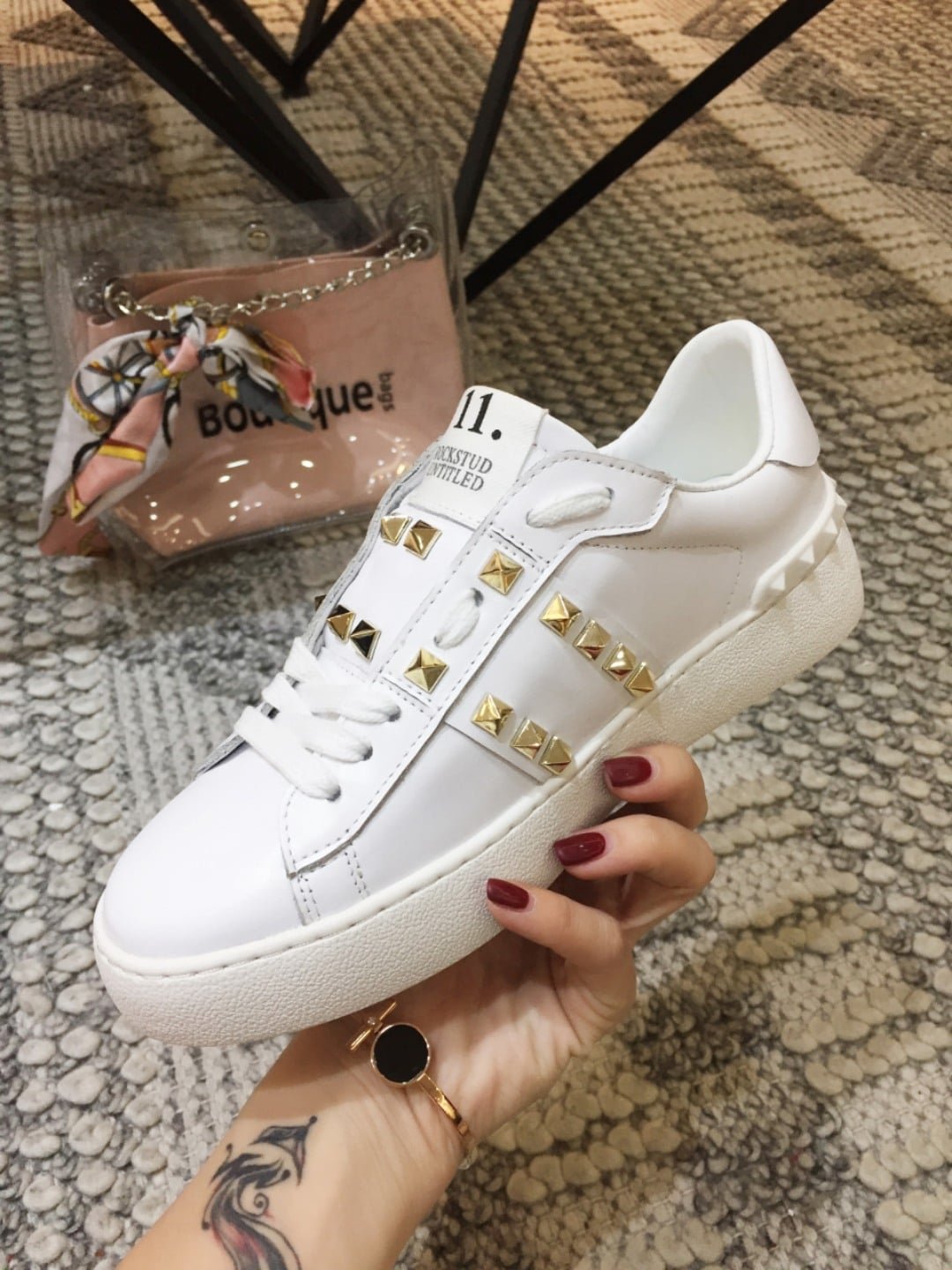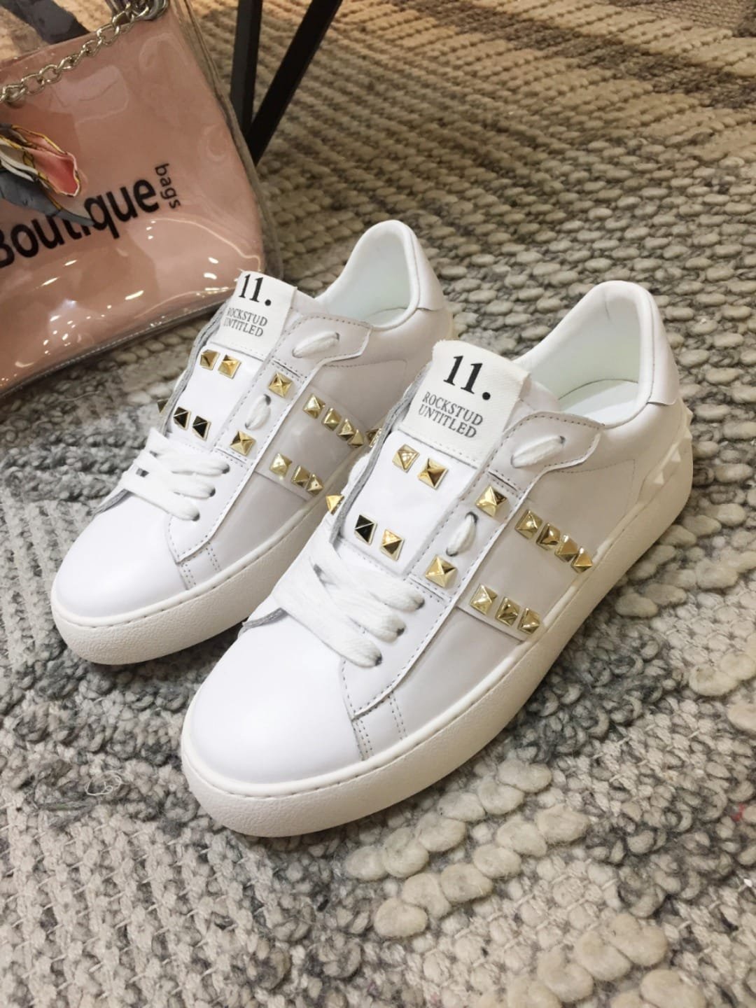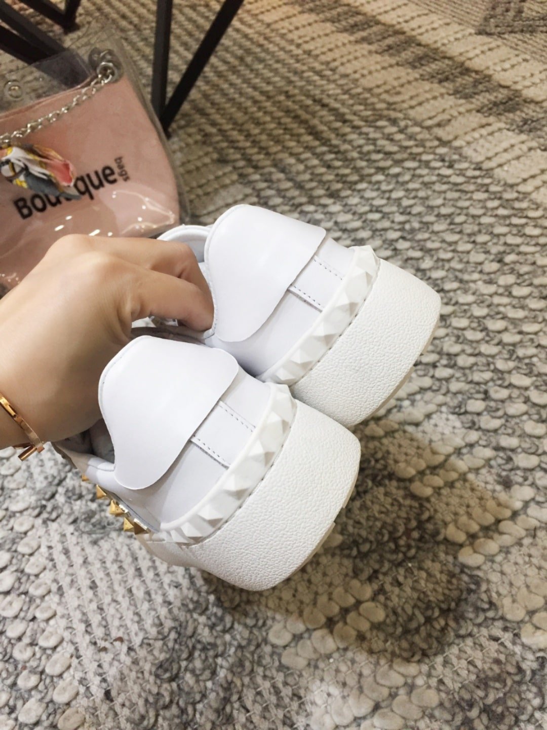 • White rubber sole with rear rubber stud details.