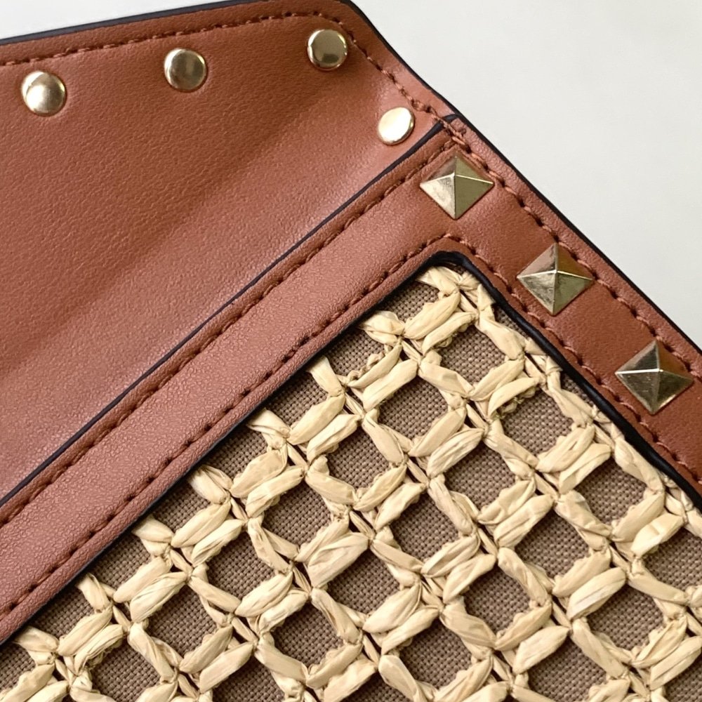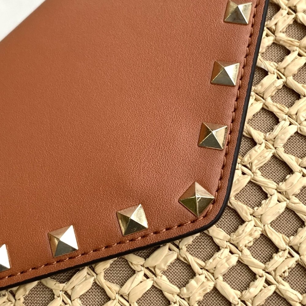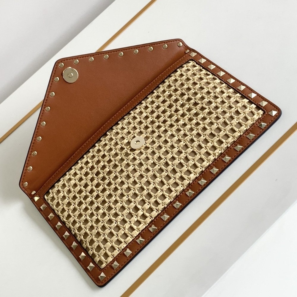 Valentino Garavani Rockstud Raffia Clutch Bag In Brown 28Cm