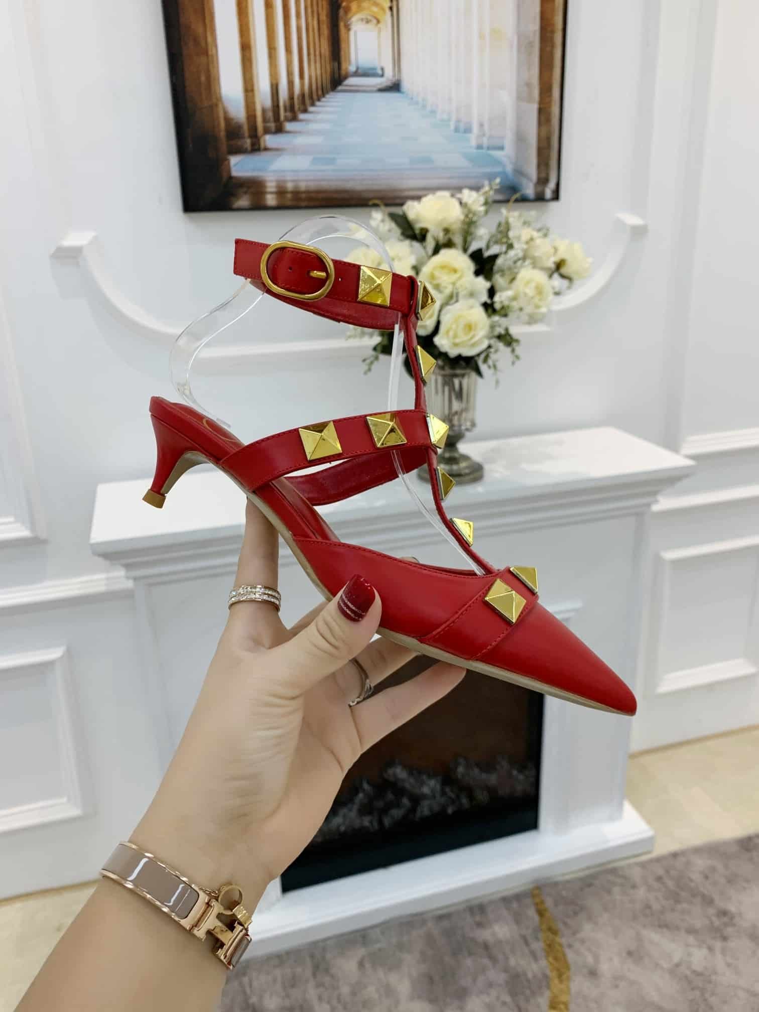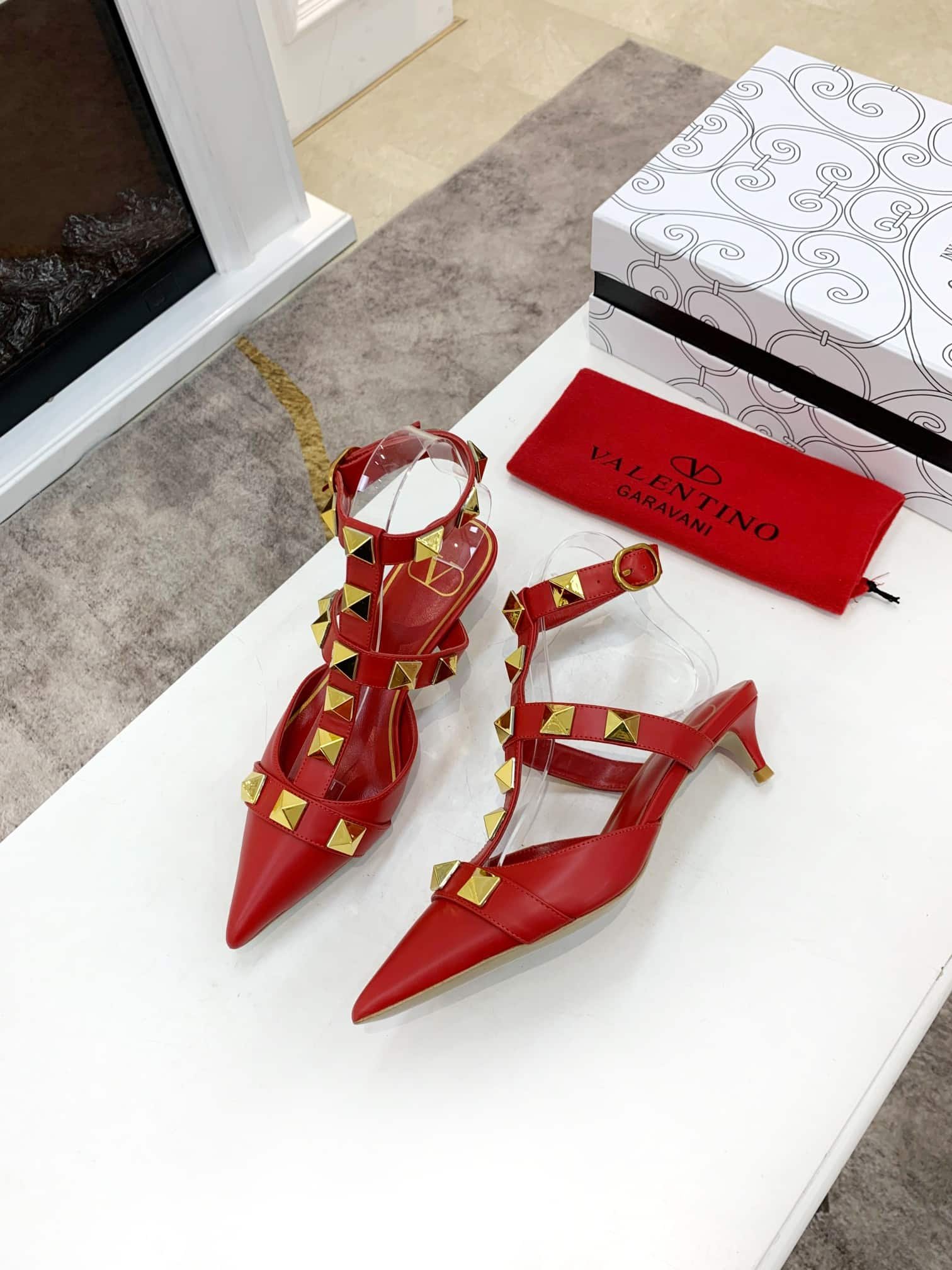 Be the first to review “Valentino Garavani Roman Stud Kitten Heel Pumps Red” Cancel reply