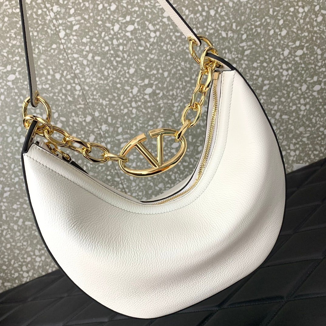 Valentino Garavani Small Vlogo Moon Hobo Bag In Grainy Calfskin With Chain White 29Cm 4W2B0N08Jdk 098