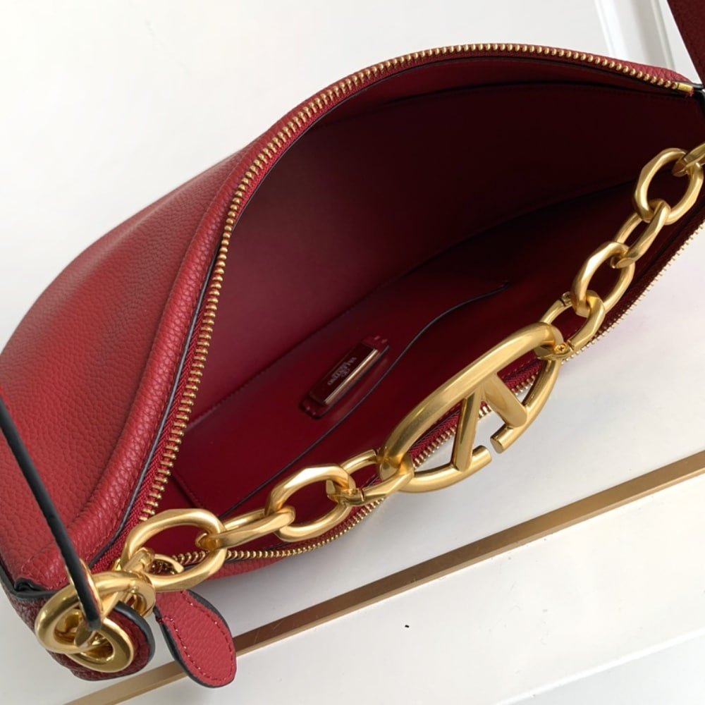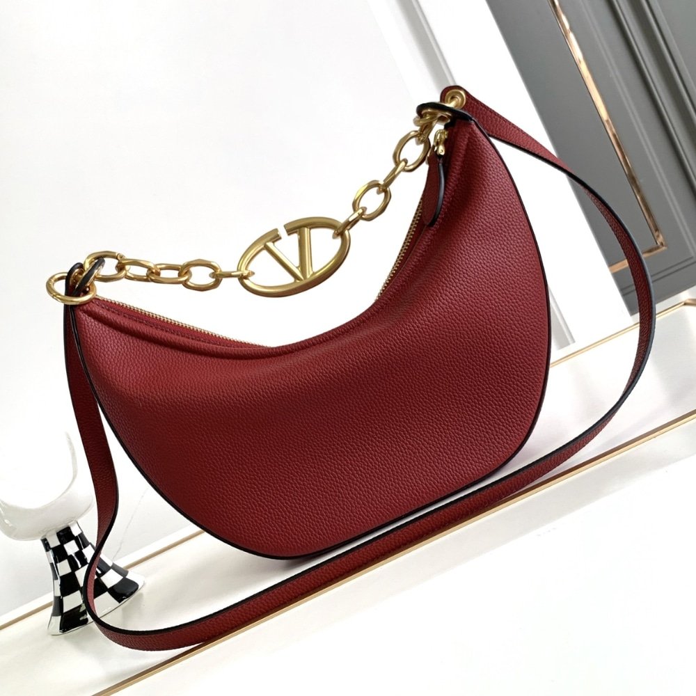 Valentino Garavani Vlogo Moon Medium Grainy Hobo Bag With Chain Dark Red 29Cm 5W2B0N59Jdk Y9Q