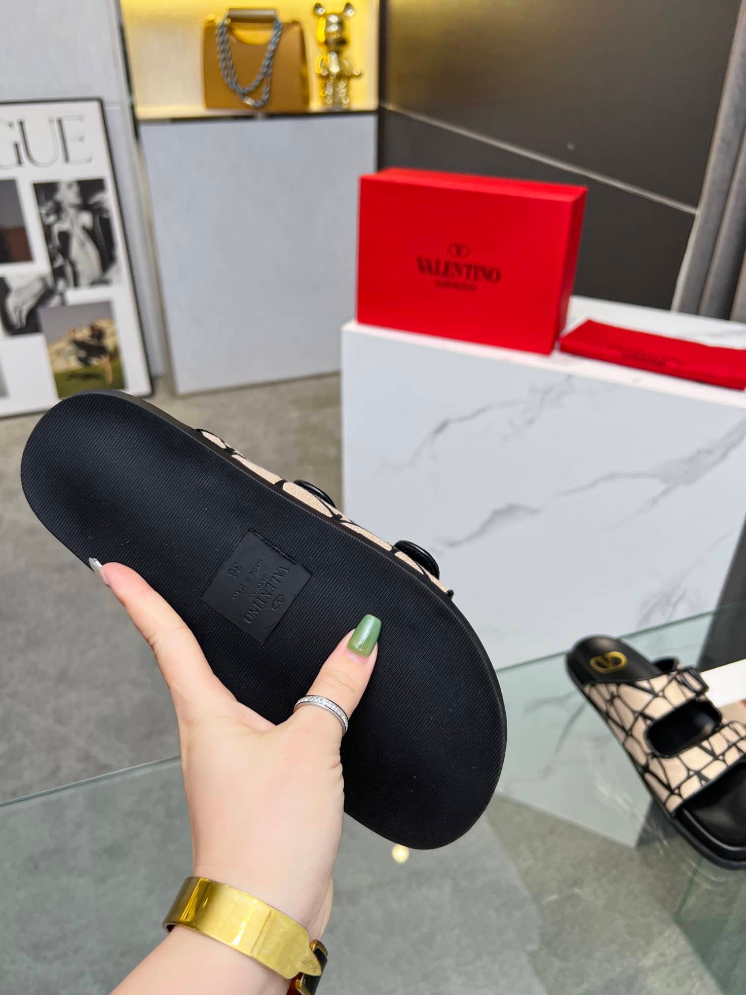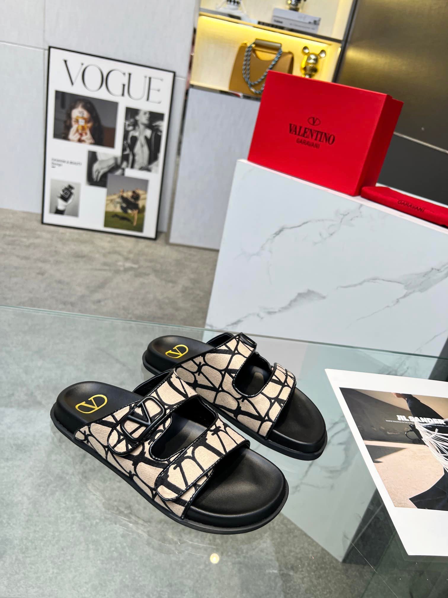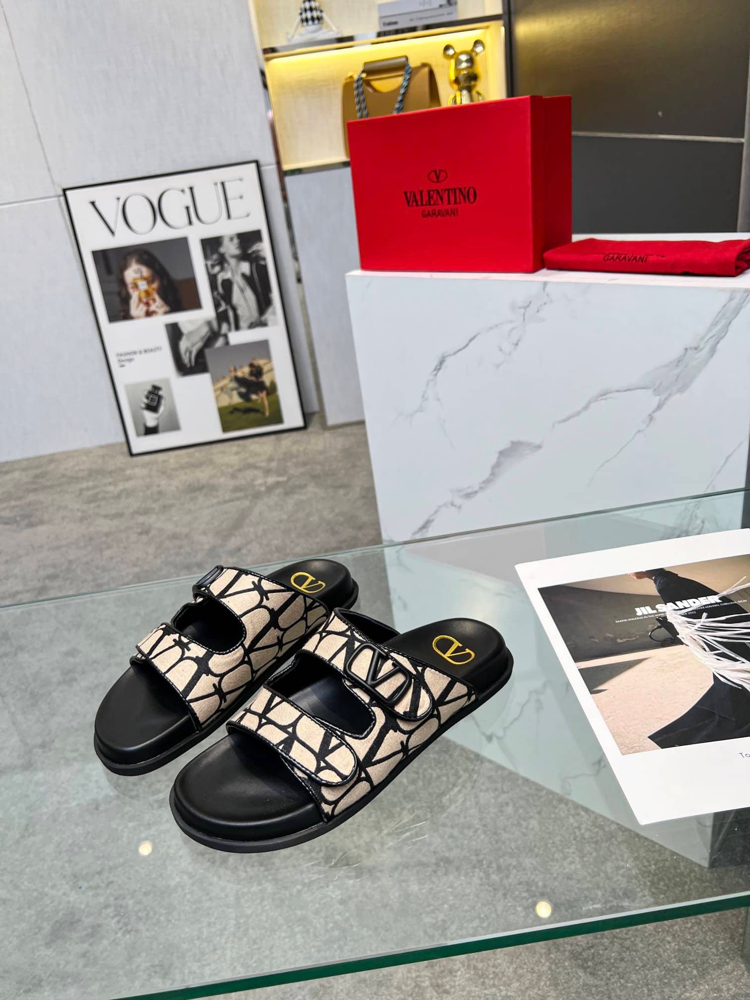 Be the first to review “Valentino Garavani Vlogo Toile Iconographe Sandal Black Beige” Cancel reply