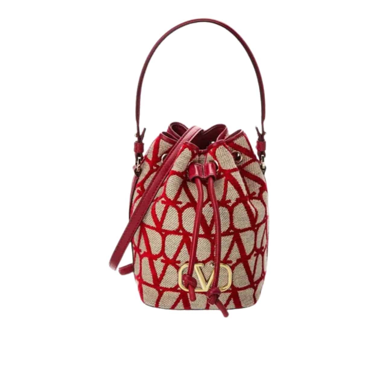 Valentino Mini Vlogo Signature Bucket Bag In Toile Iconographe Red 22Cm