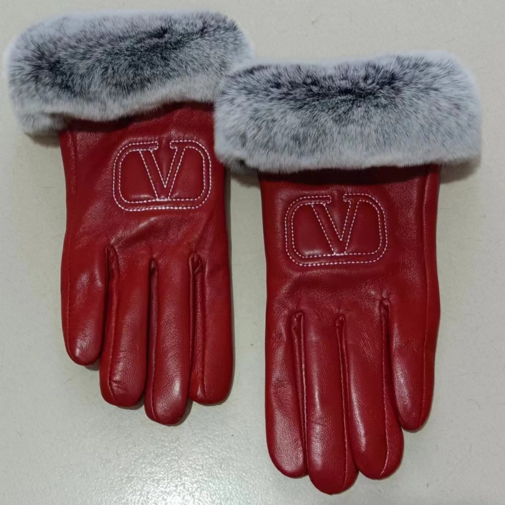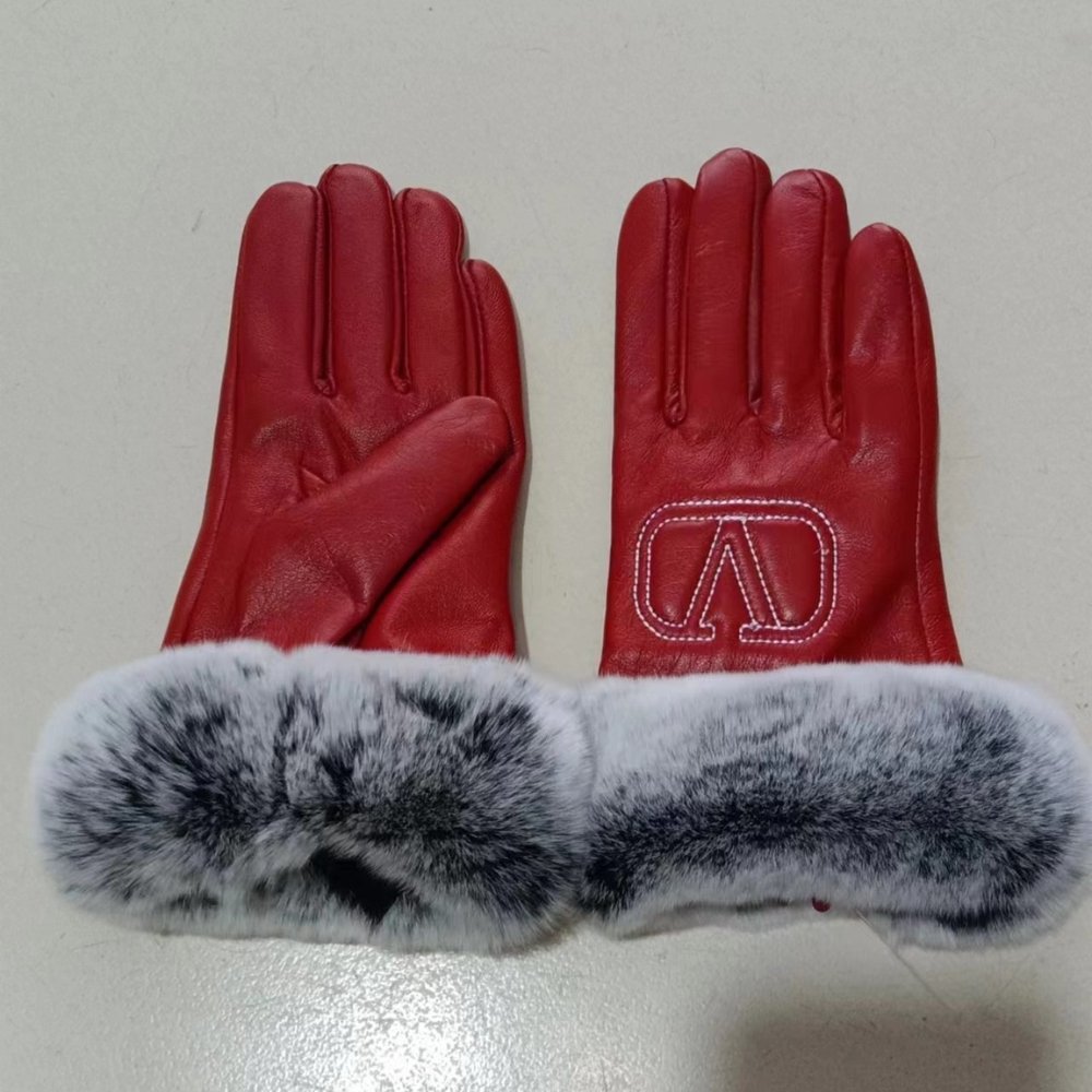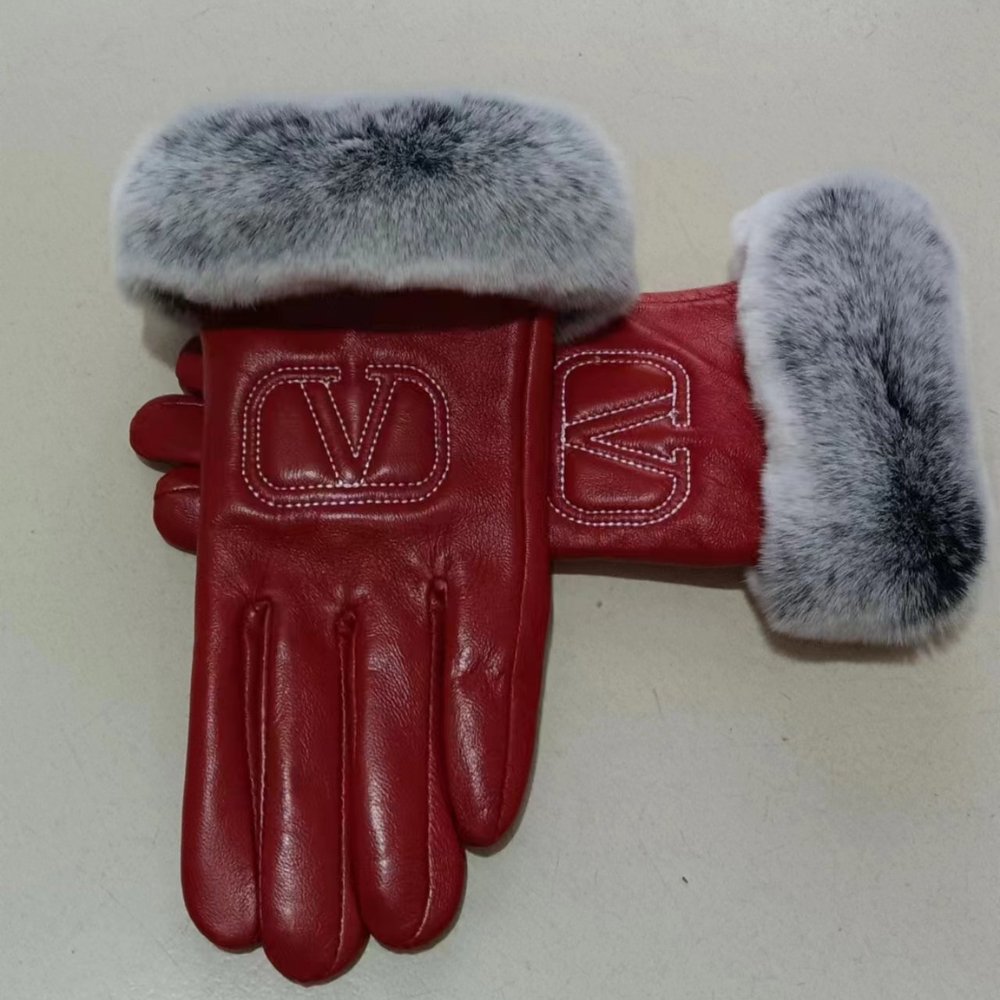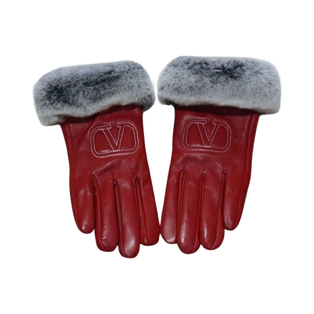 Valentino Rabbit Fur Red Leather Gloves